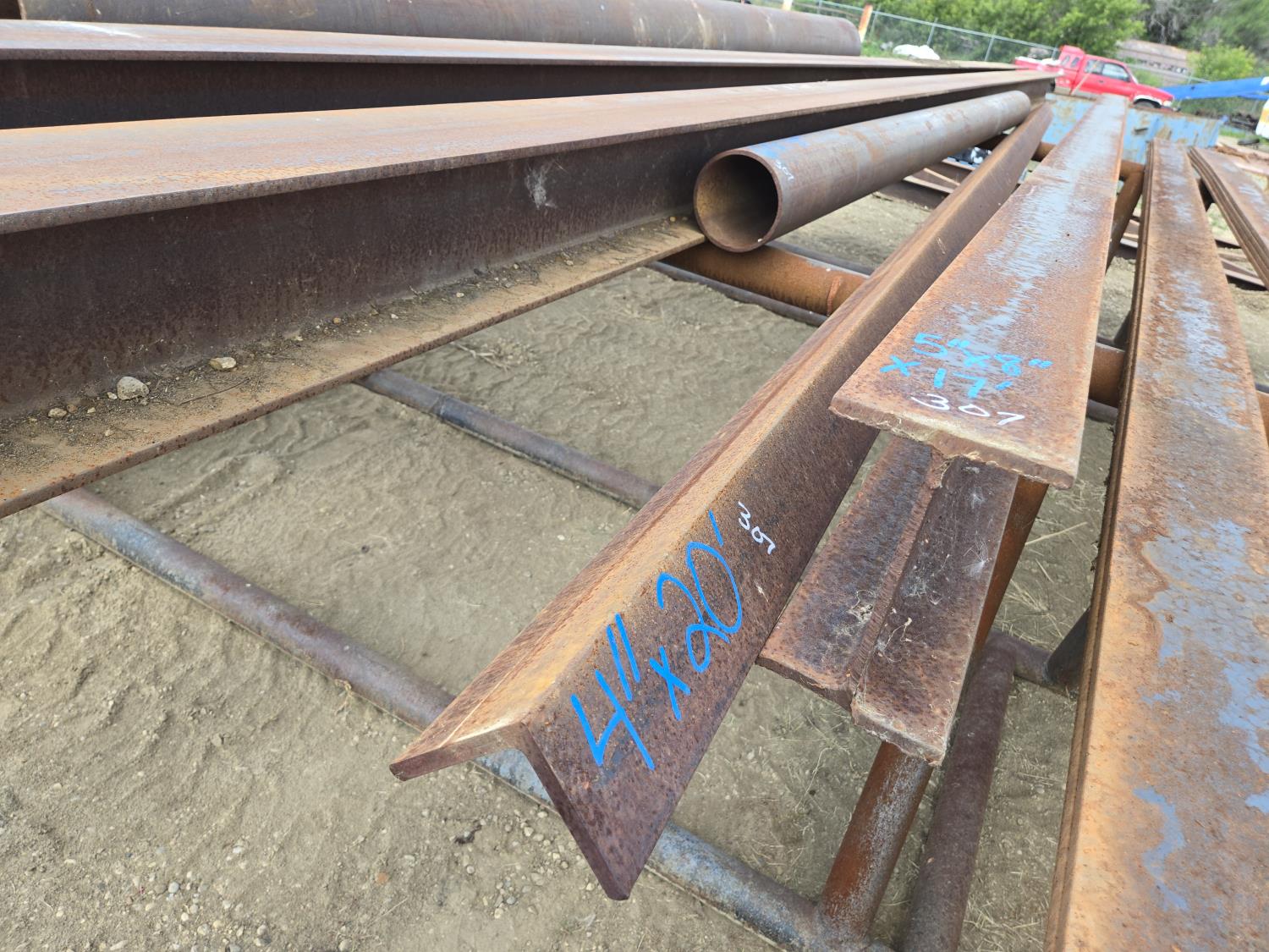 128 (1) 6 Inch X 13 Ft Pipe, (1) 4 Inch X 20 Angle Iron (1) 5 Inch X 8 Inch 17 Ft I Beam