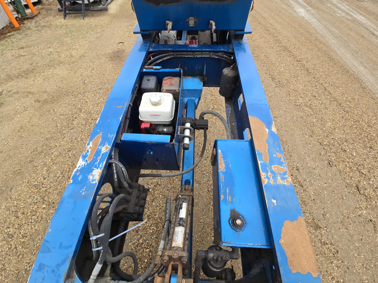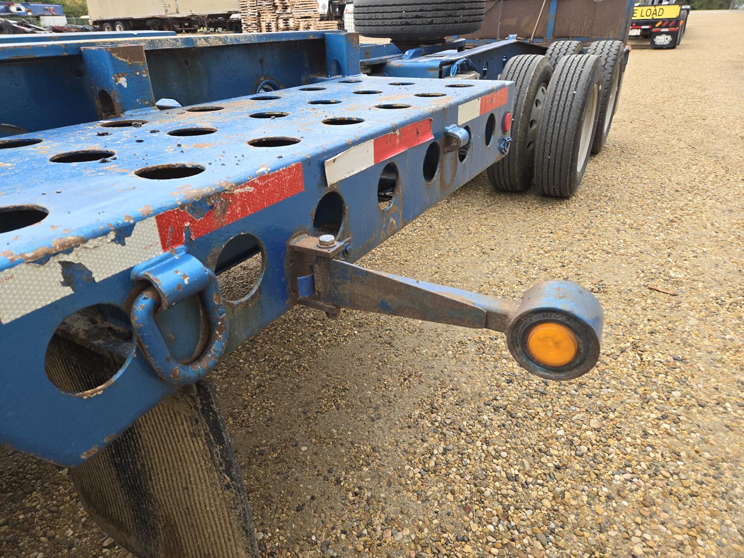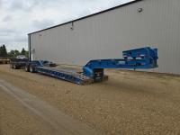 Hydraulic detachable neck, flip neck extension for jeep, self contained hydraulic system with electric start Honda gas engine, 20X8-1/2 ft main deck, swing out extensions, boom well, pin joint deck, swing out and rear strobe lights, aluminum wheels, on trailer and booster. 275/70R22.5 tires Both sell as one unit