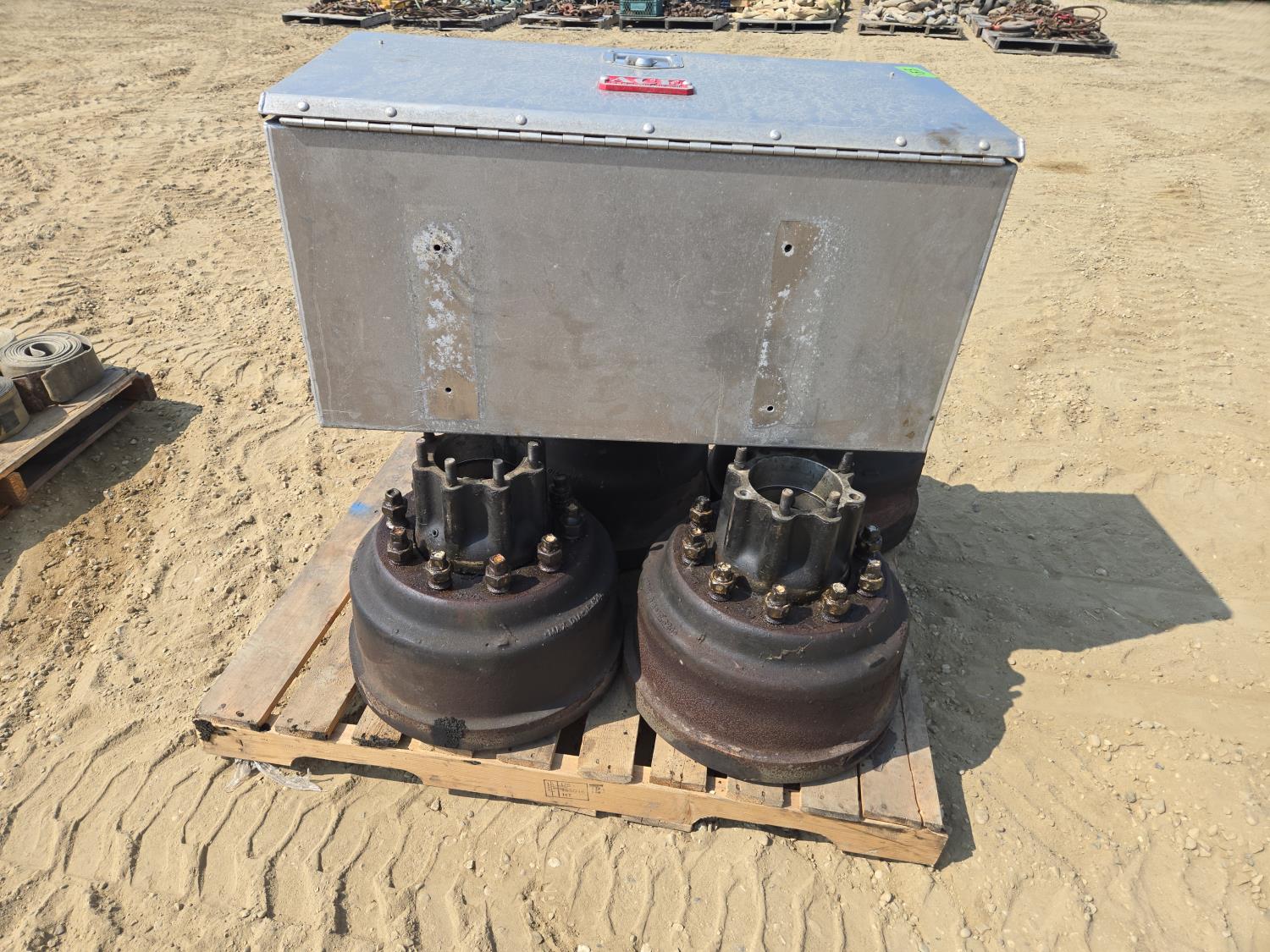 397 (4) Heavy Truck Brake Drums with Hubs & Ace Aluminum Tool Box