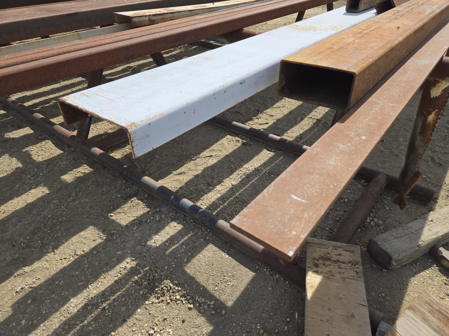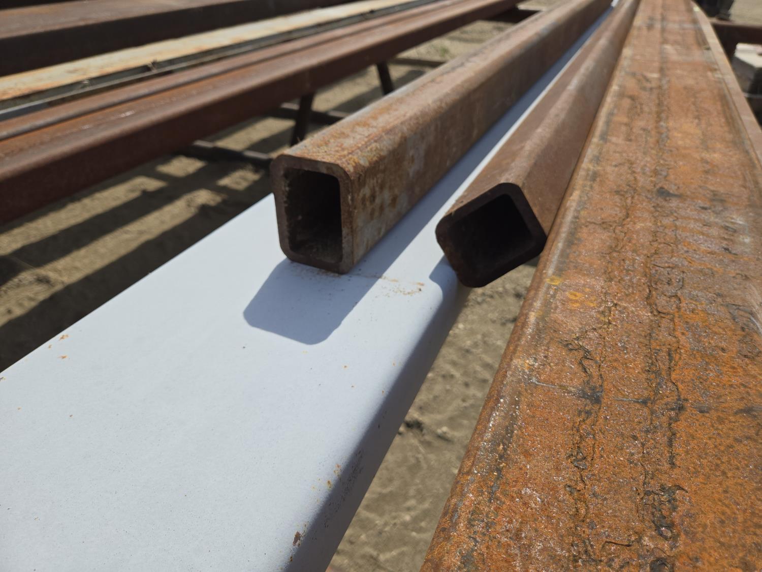 (1) 1/2 inch X 4 inch Flat bar, (2) 2.5 inch X 3 inch X 8 ft & (1) 10 ft rectangular tubing, (1) 2-1/2 inch X 10 inch formed steel channel