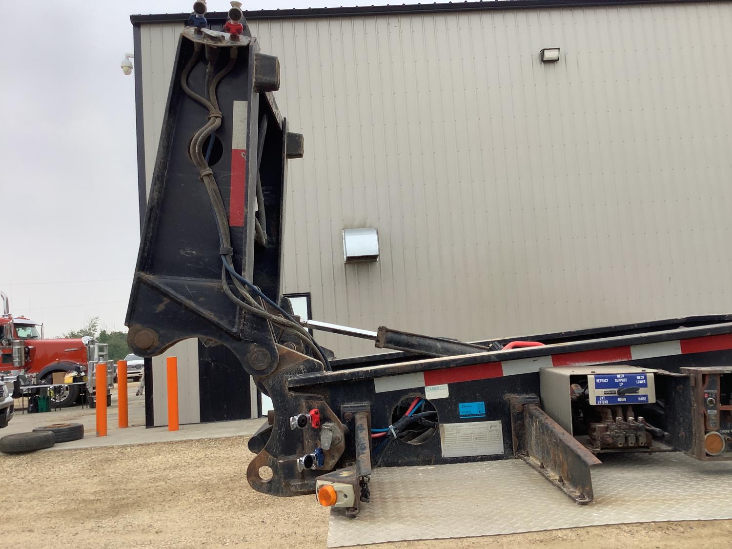 10 ft wide, self contained hydraulic system, flip neck extension for T/A jeep, rear beavertail, plumbed for rear booster, pin joint main deck, rear boom well, swing out rear strobe lights, air ride suspension, aluminum wheels low pro 275/70R22.5 tires