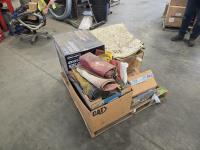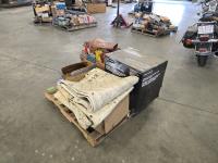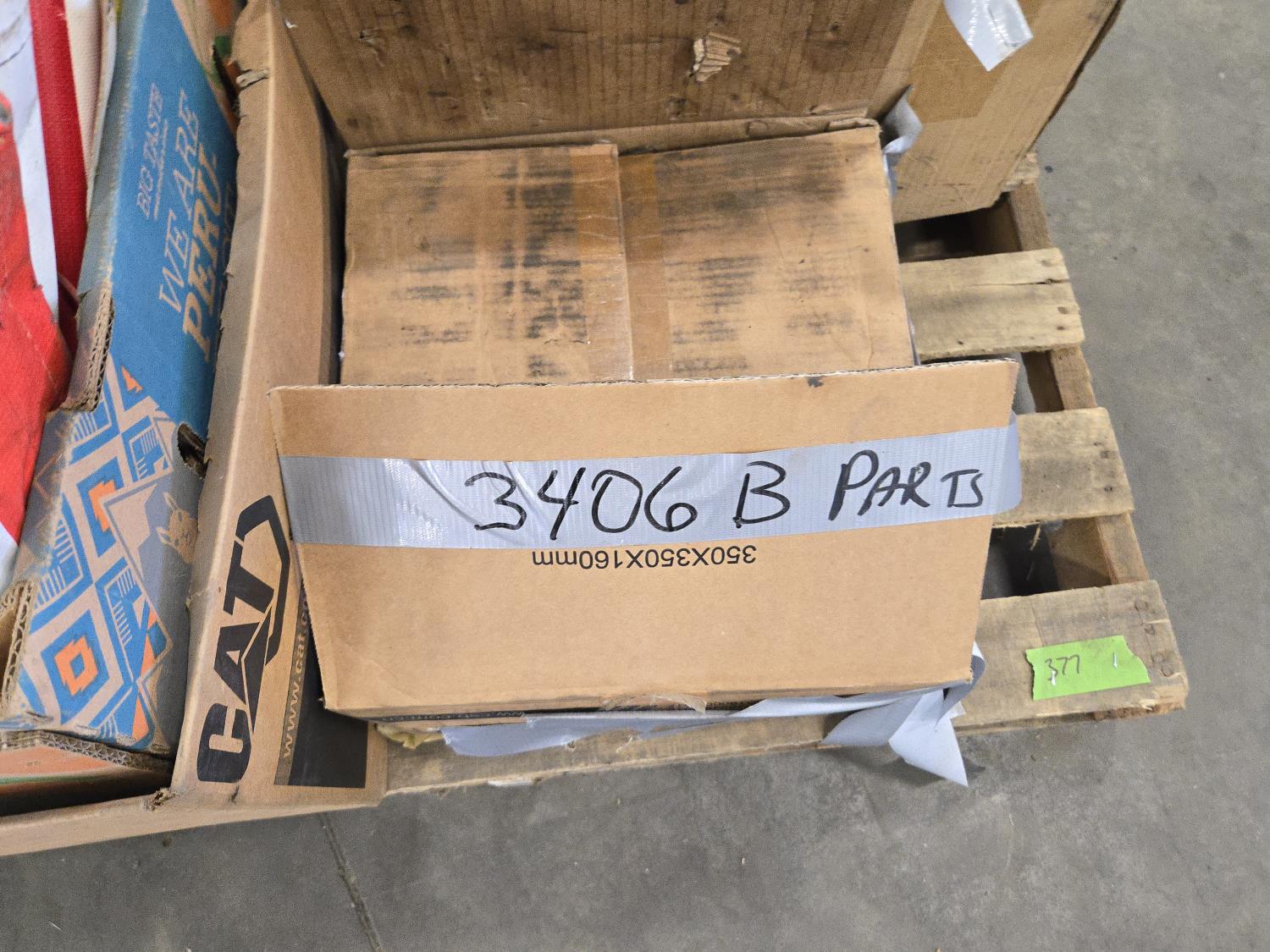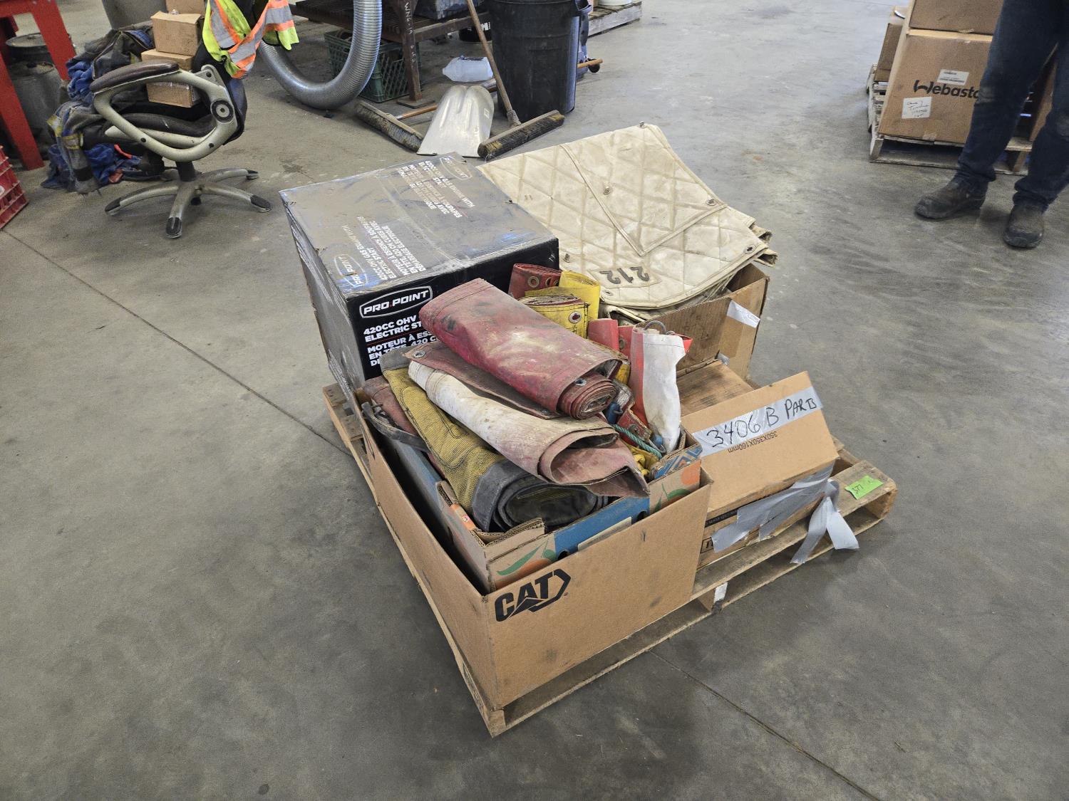 Qty of 3406B parts, qty of marker flags and wide load signs, qty of heavy truck winter fronts, Pro Point 420 cc OHV gas electric start engine still in box