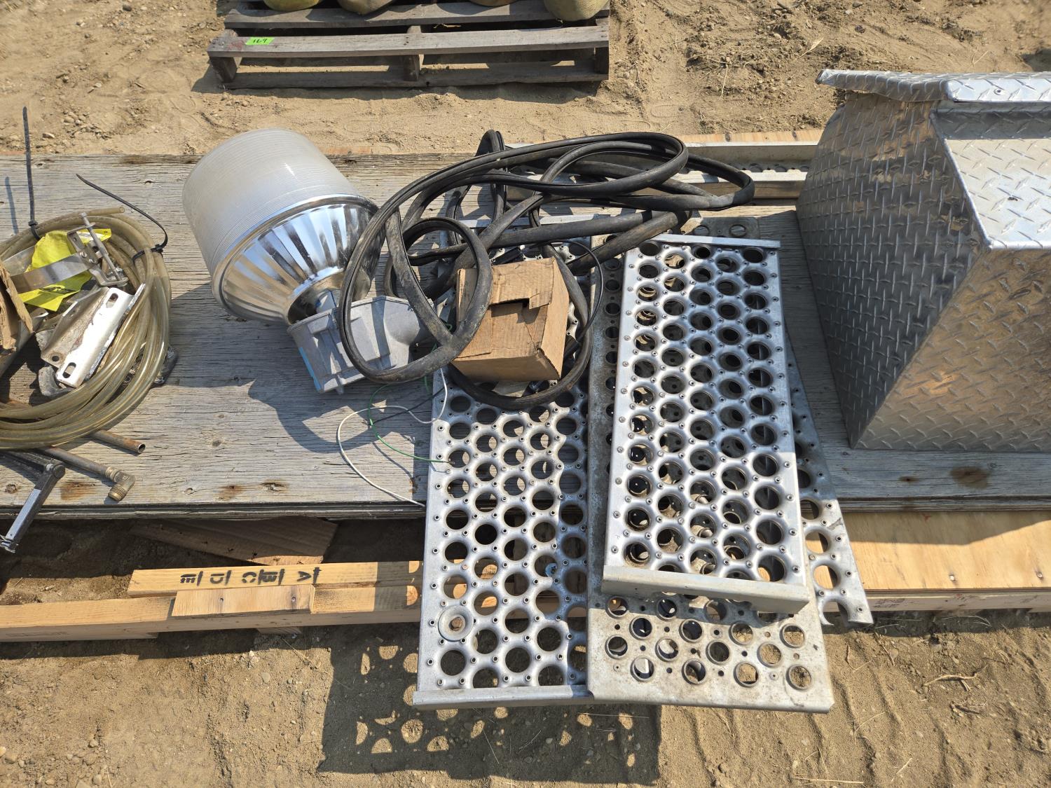 144 Qty of Grating, Aluminum Tool Box, Yard Light & Misc Hardware