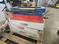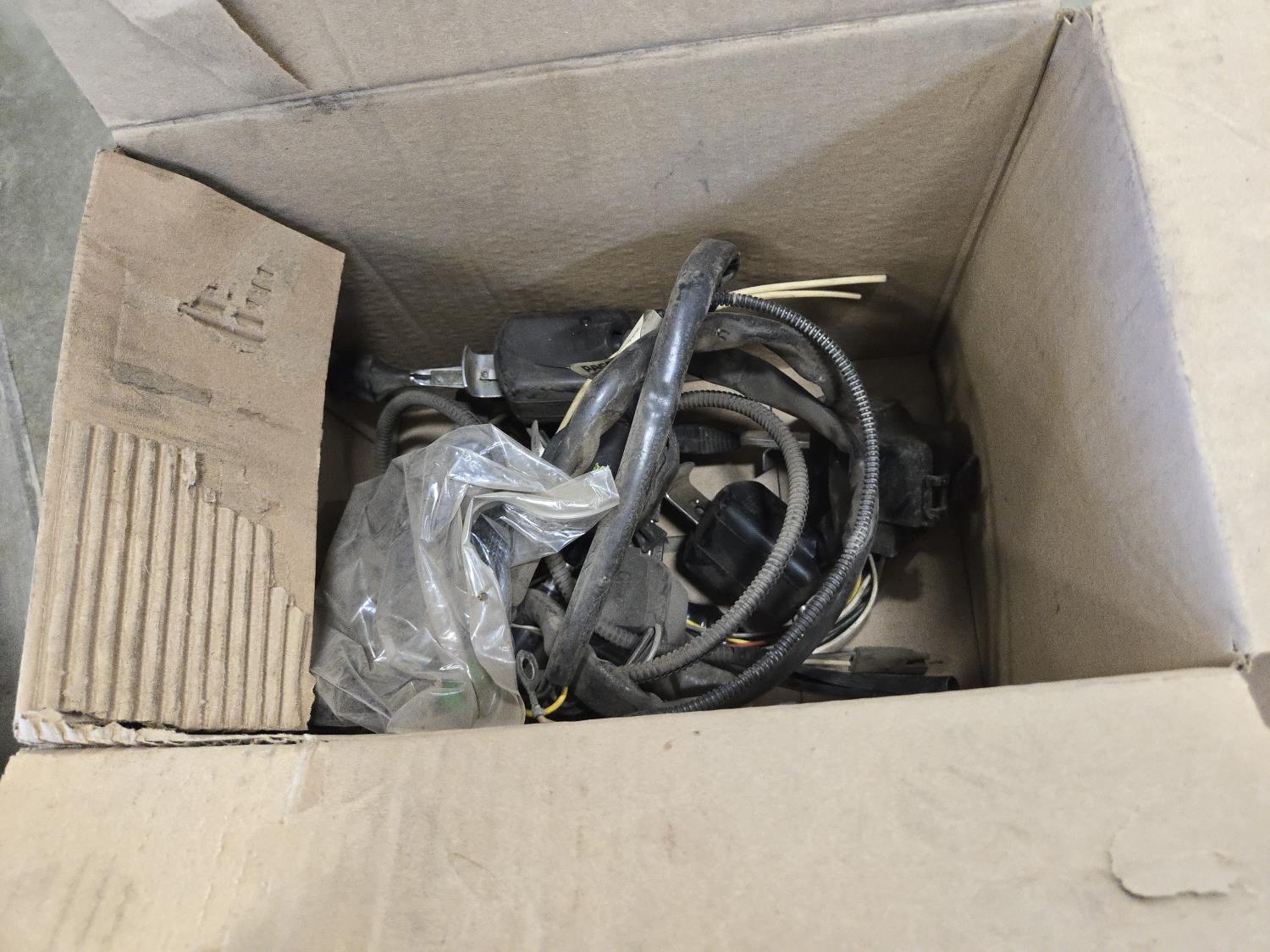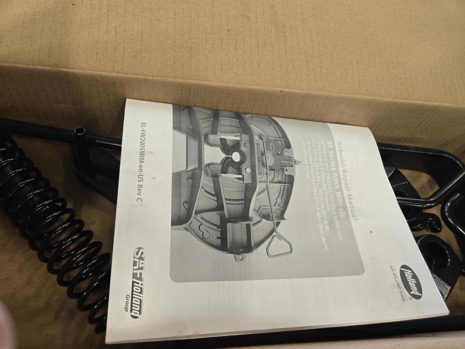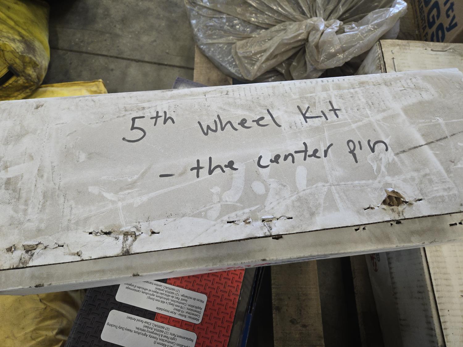 (5) 2 way radios, turn signal wiring and hardware, (4) unused truck mirrors, qty of used mirrors, qty of windshield wipers, (3) unused 5TH wheel center pin kits, (2) Kenworth steering wheels, qty of spill kits