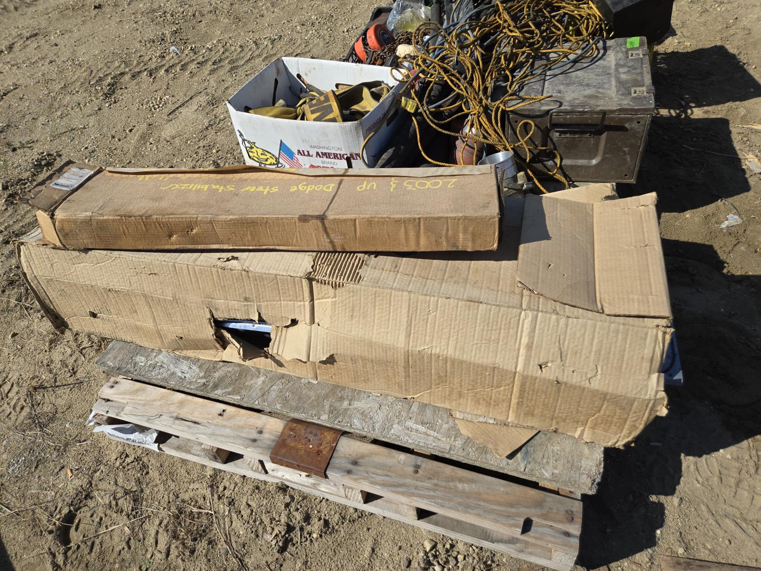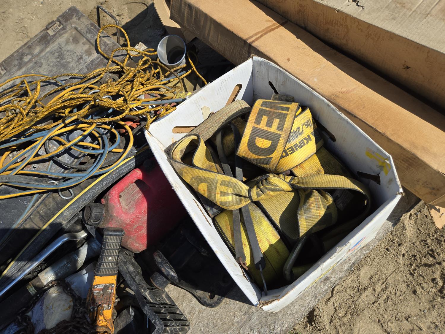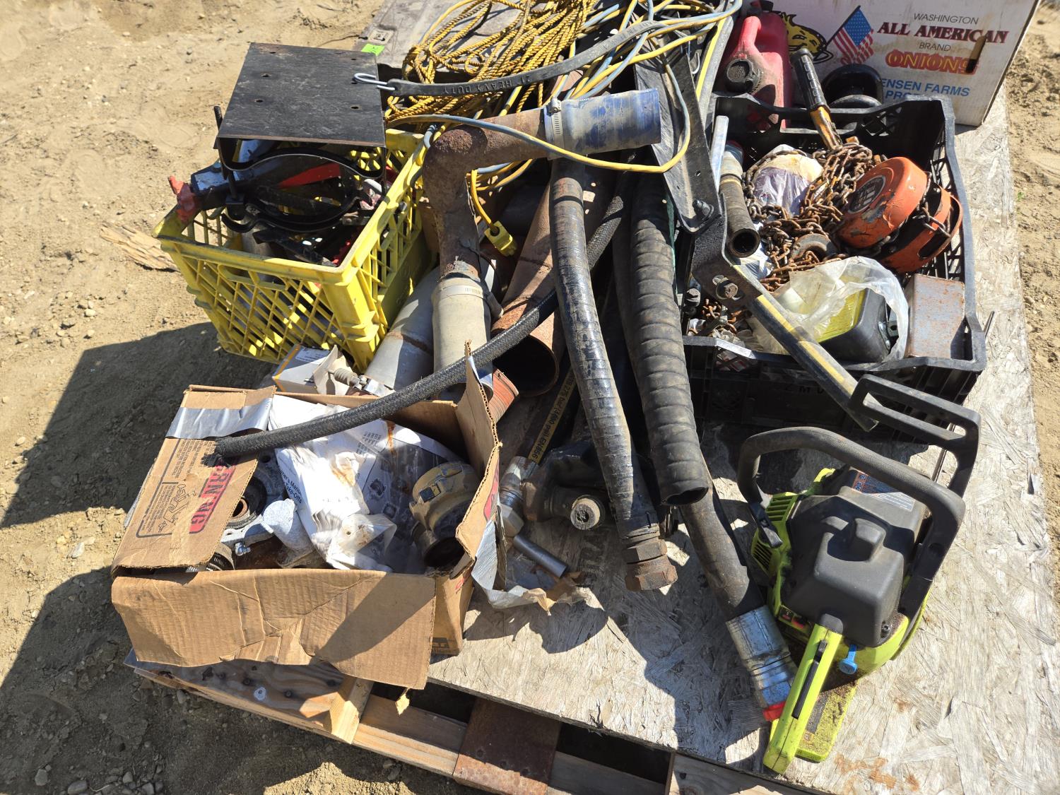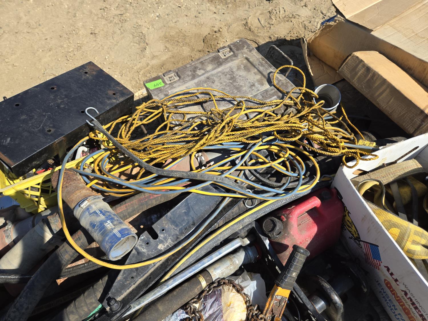 Ammo box, 4 inch positive air shut off, 1 ton chain hoist, new fuel tank, Poulan 2135 chain saw, miscellaneous truck parts, shop fluids