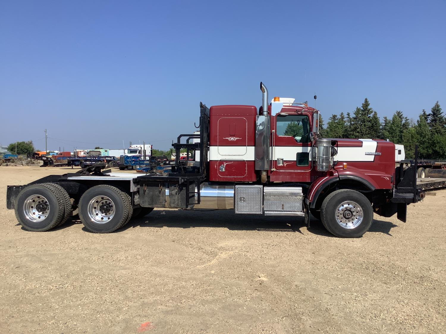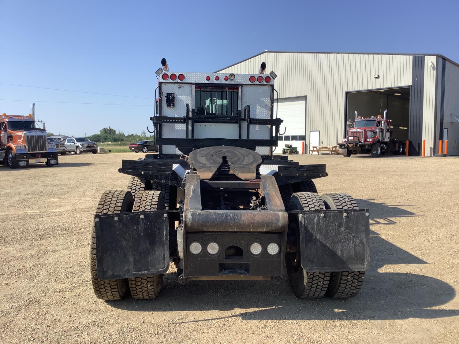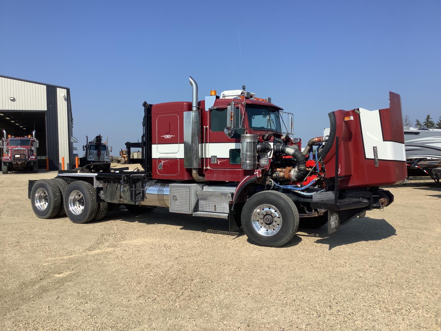 Cummins N-14 6 cylinder 460 HP engine, engine brake, Eaton Fuller 18 speed manual transmission, 42 inch sleeper, A/C, removable sleeper, beacons, head rack, rear live roll, tool box , air ride suspension, 16,000 lb front axle, 52,000 lb rear axles, full lockers, 5.38 ratio, all aluminum wheels, 385/65R22.5 front tires, 11R24.5 rear tires
