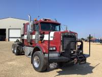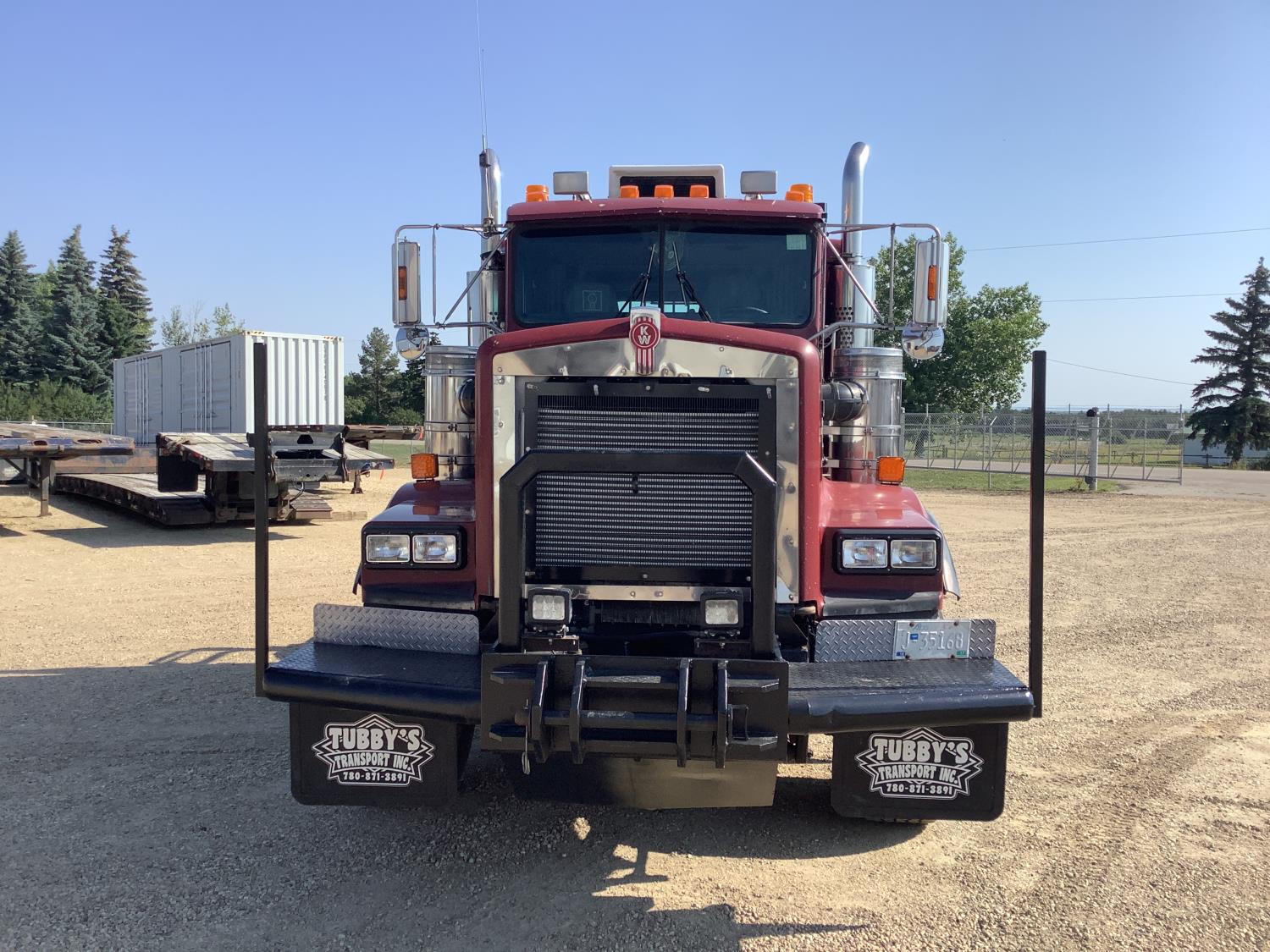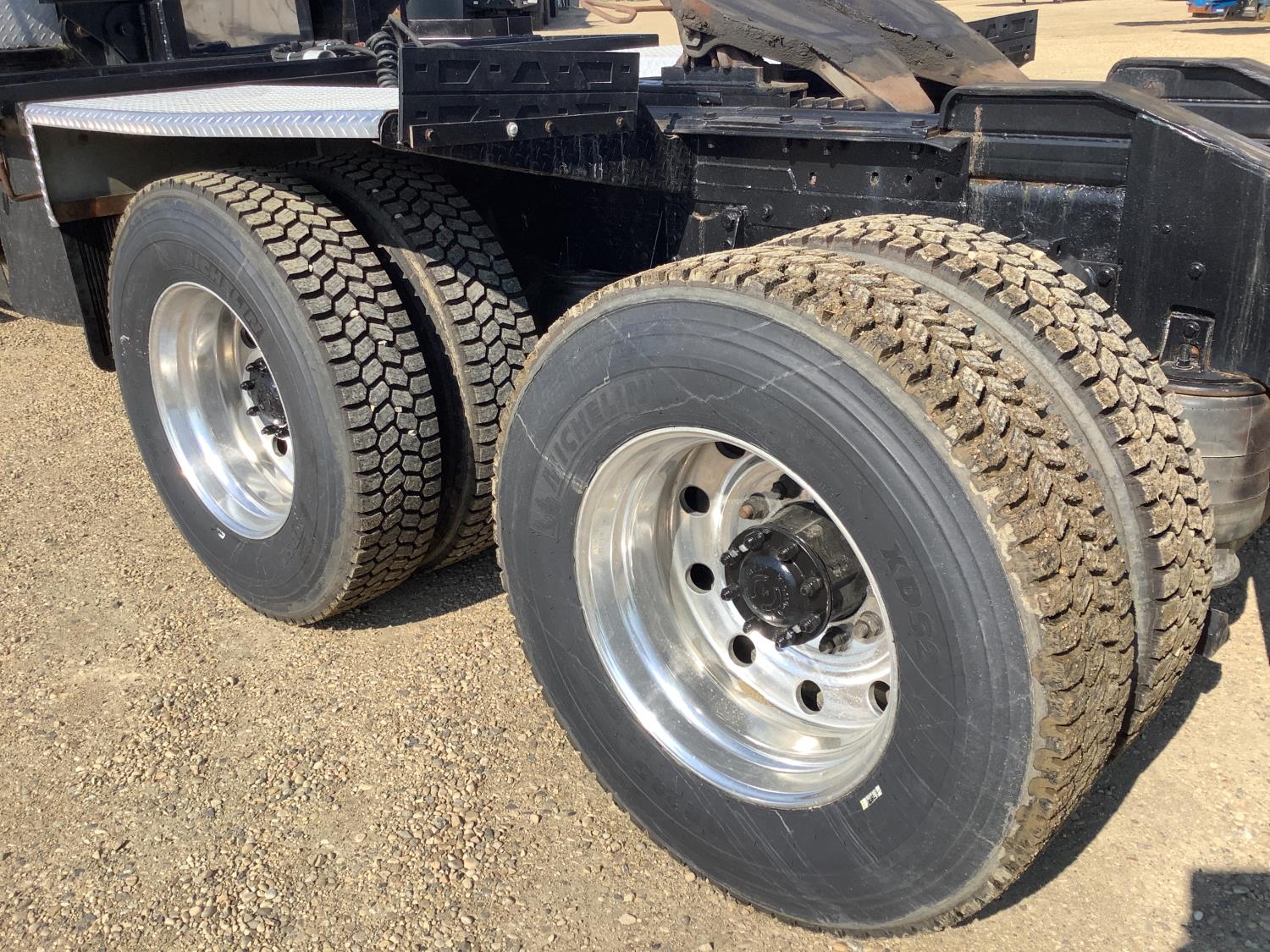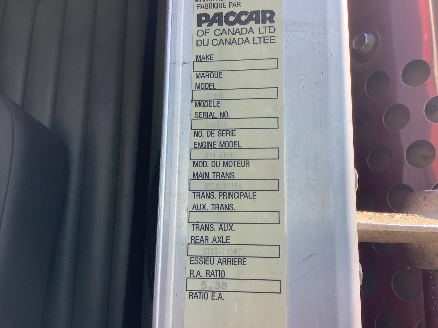 Cummins N-14 6 cylinder 460 HP engine, engine brake, Eaton Fuller 18 speed manual transmission, 42 inch sleeper, A/C, removable sleeper, beacons, head rack, rear live roll, tool box , air ride suspension, 16,000 lb front axle, 52,000 lb rear axles, full lockers, 5.38 ratio, all aluminum wheels, 385/65R22.5 front tires, 11R24.5 rear tires