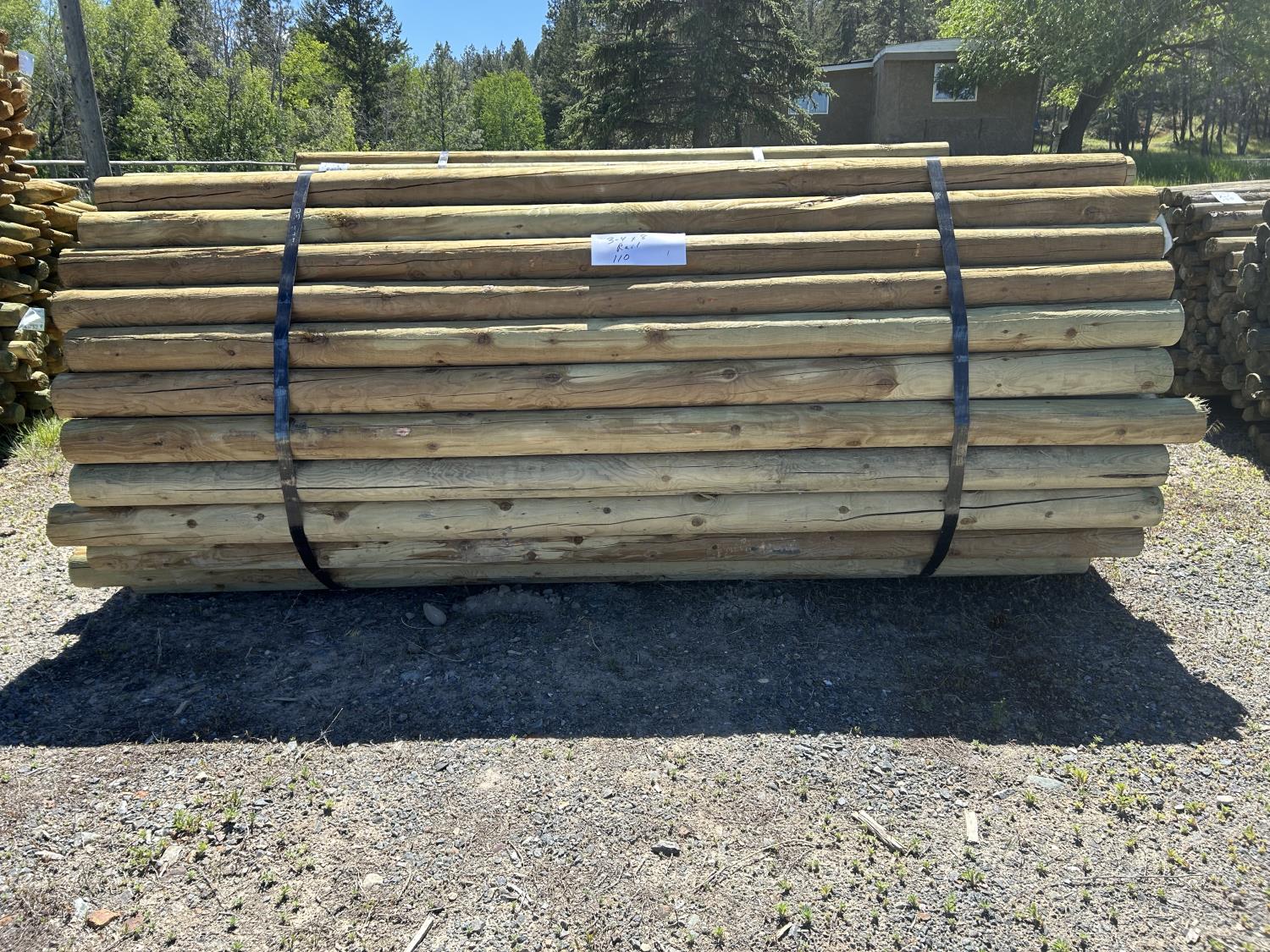 580 (110) 3-4 Inch X 8 Ft Treated Blunt Rails (Unused)