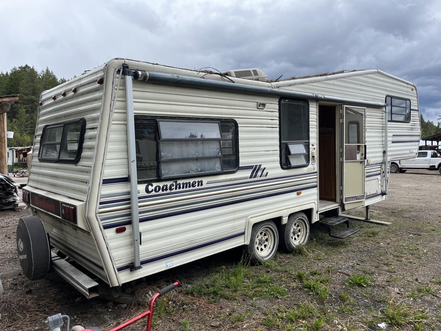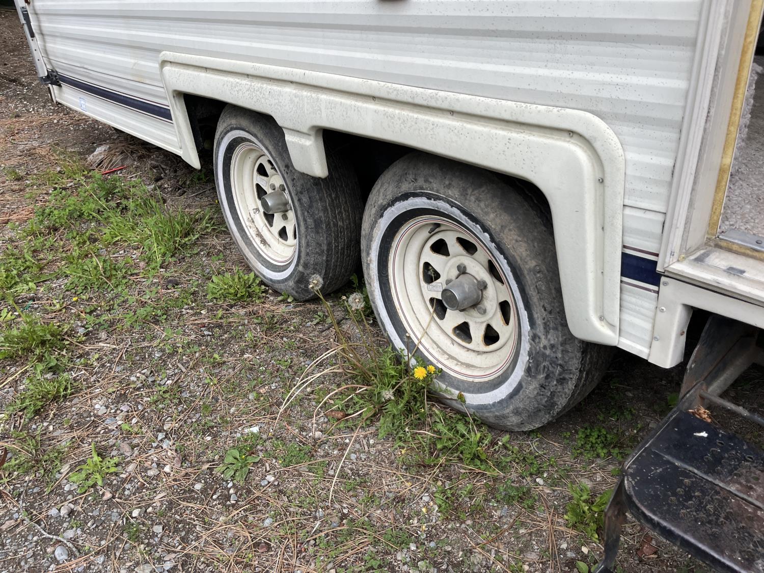 stove, fridge, microwave, full bath, A/C, manual awning, 78-15 tires