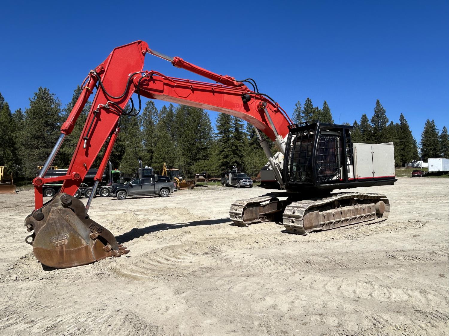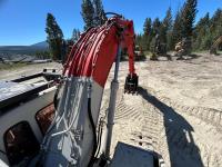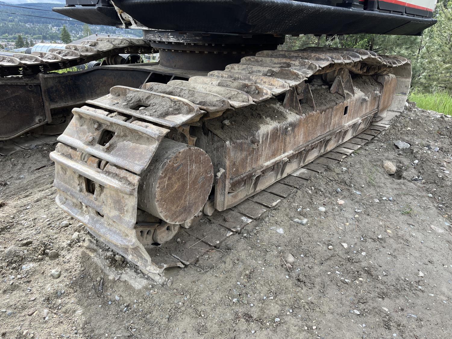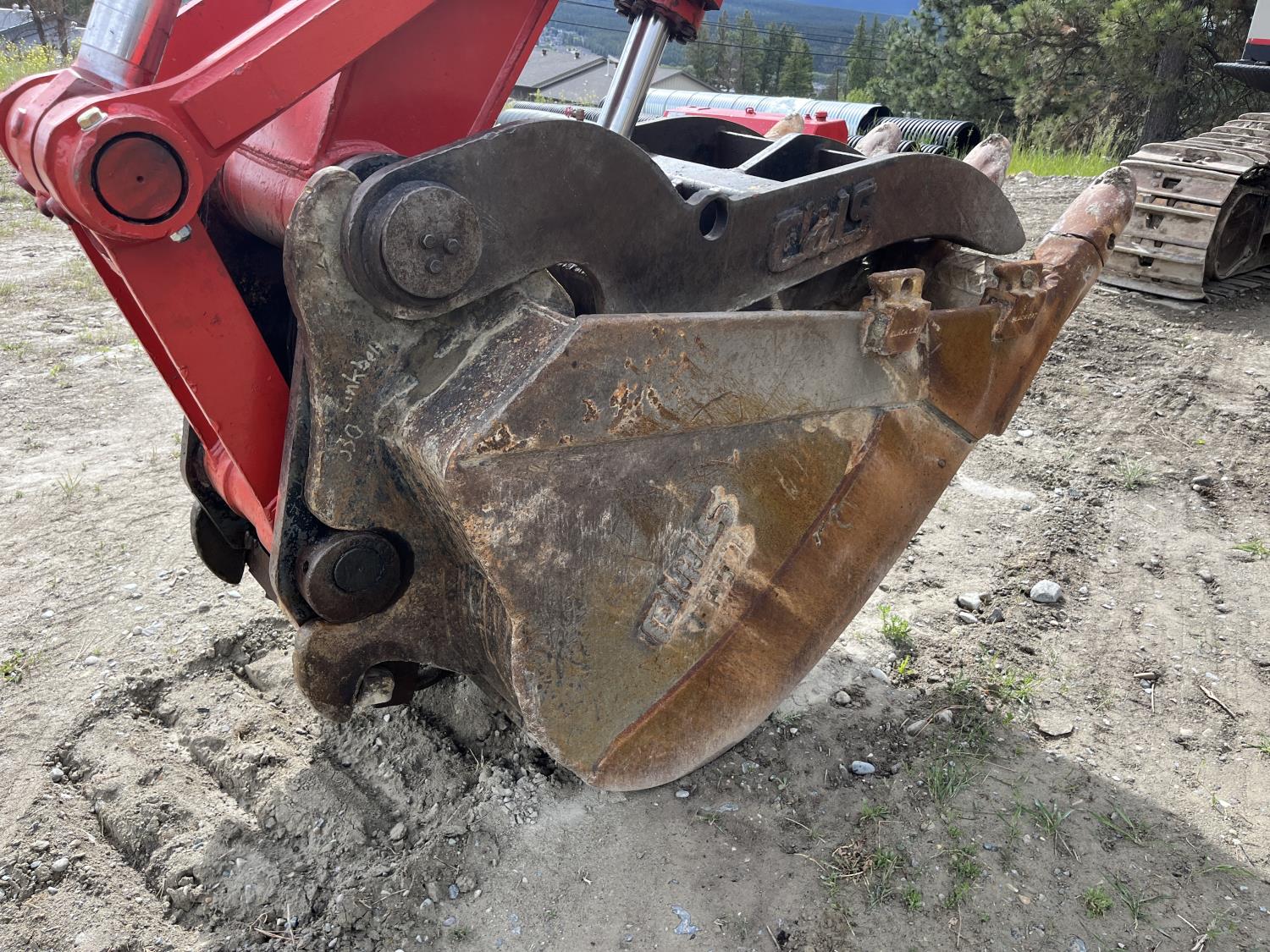 Enclosed cab, A/C, pilot controls, cab screens, 48 inch dig bucket, Q/C coupler, hydraulic thumb, 1 auxiliary hydraulics, 10 Ft 6 inch stick, catwalks, full forestry guarding, 28 inch track pads, triple grousers