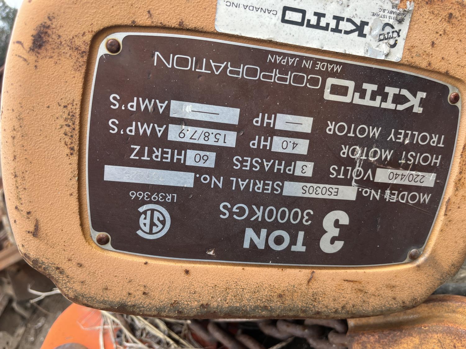 423 6000 lb Overhead Crane w/ 3Ton Electric Crane