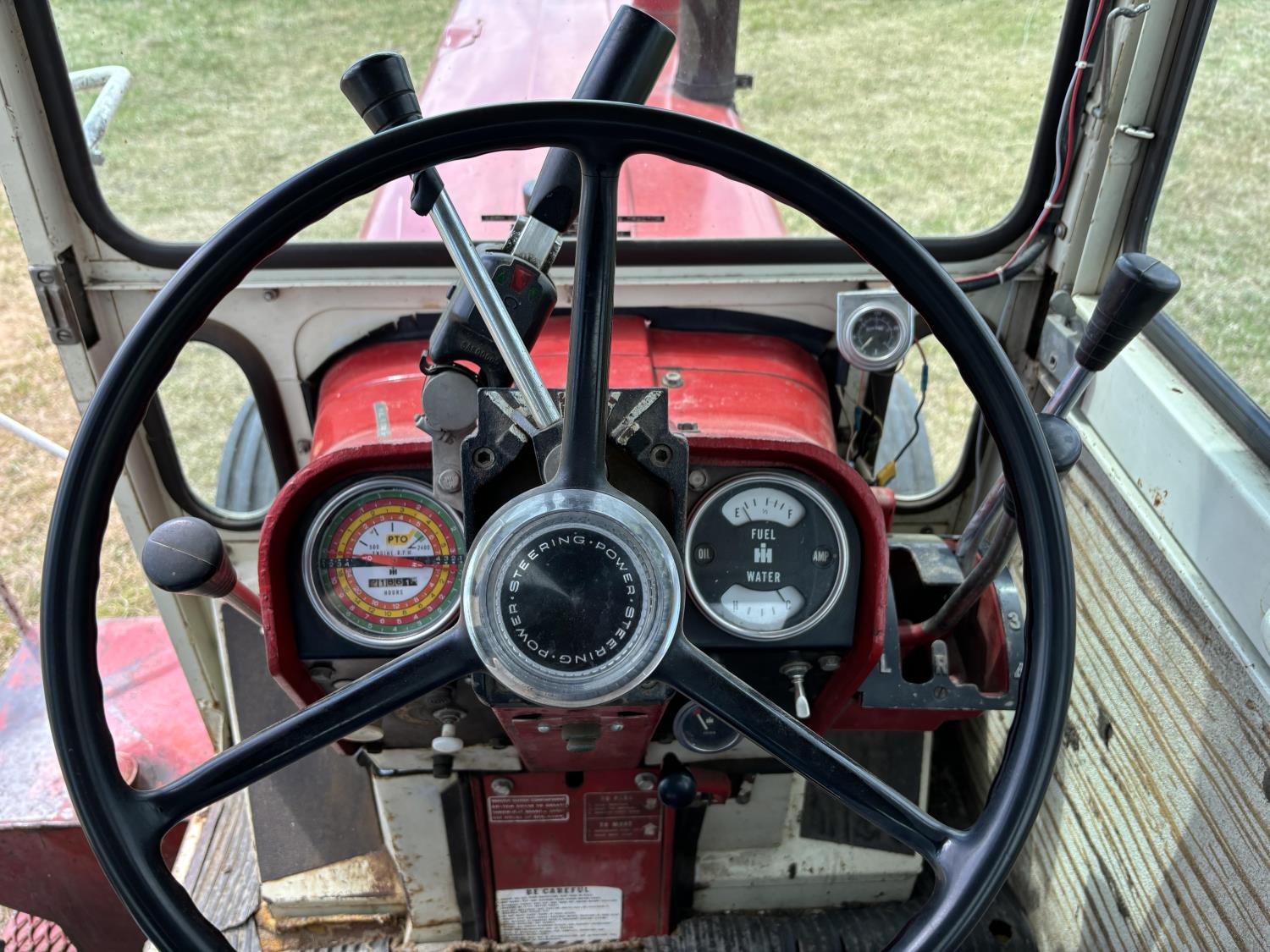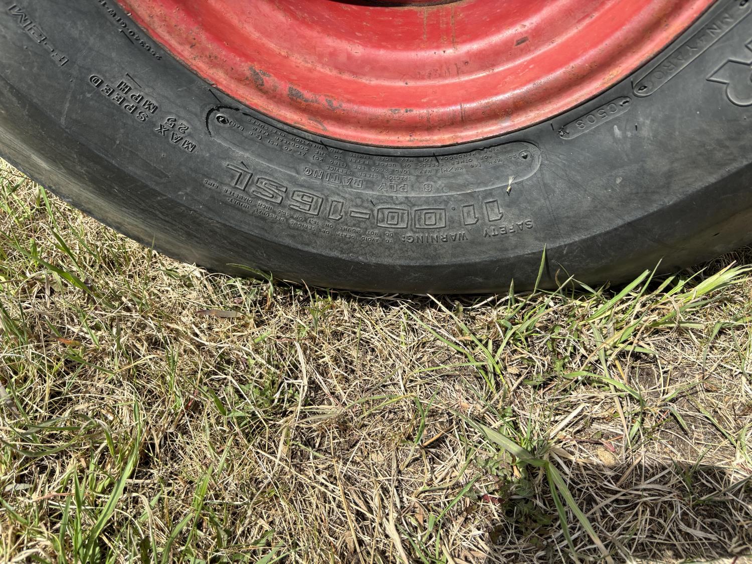 International 6.7 L 6 cylinder diesel engine, 113 PTO HP, 16 speed partial power shift transmission, cab, 540/1000 PTO, 2 rear hydraulic outlets, rear wheel weights, 11.00-16 front tires, 18.4-38 rear tires, factory duals