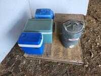 15 (2) Electric Coolers, Litter Box, Igloo Water Cooler