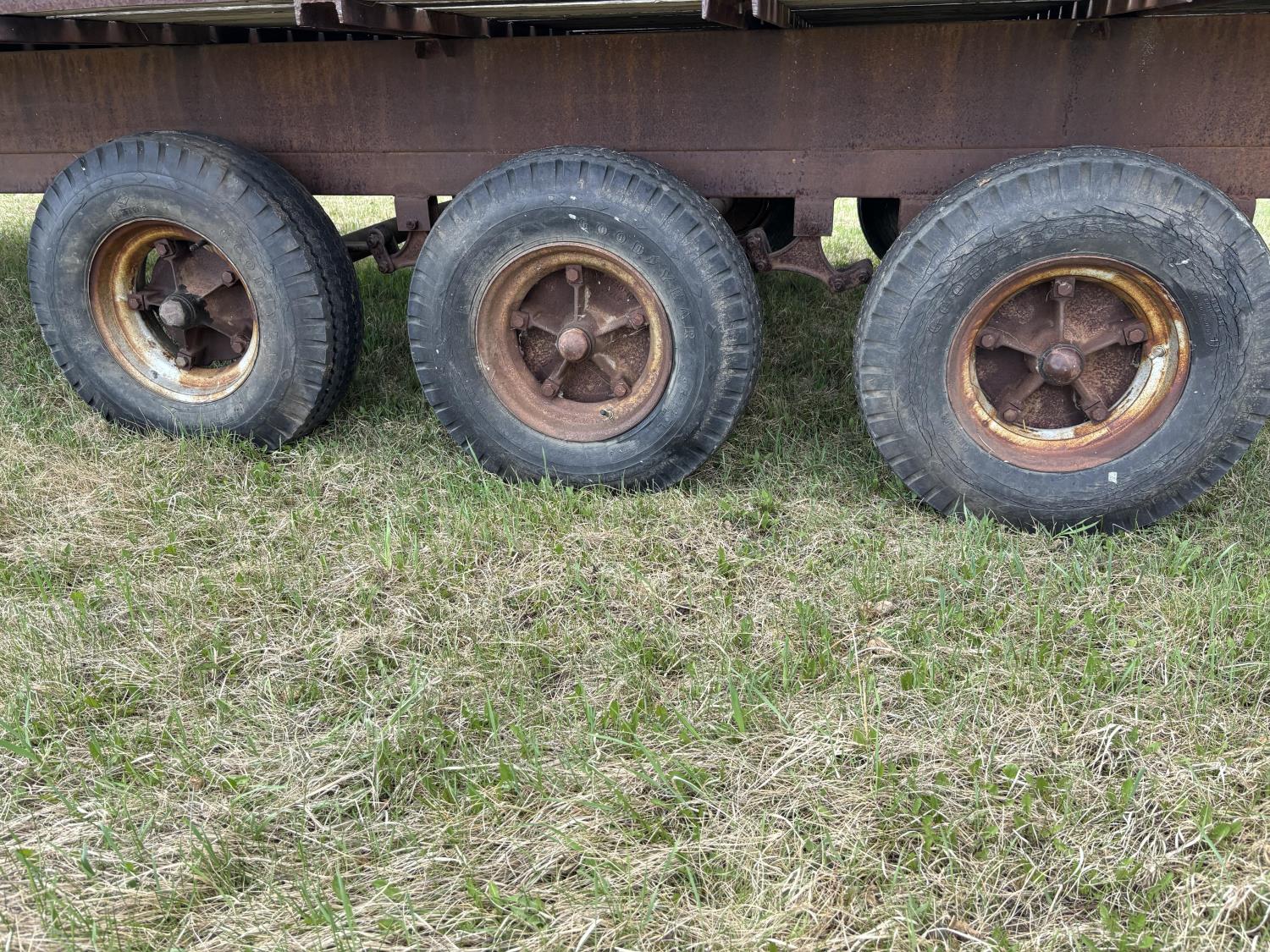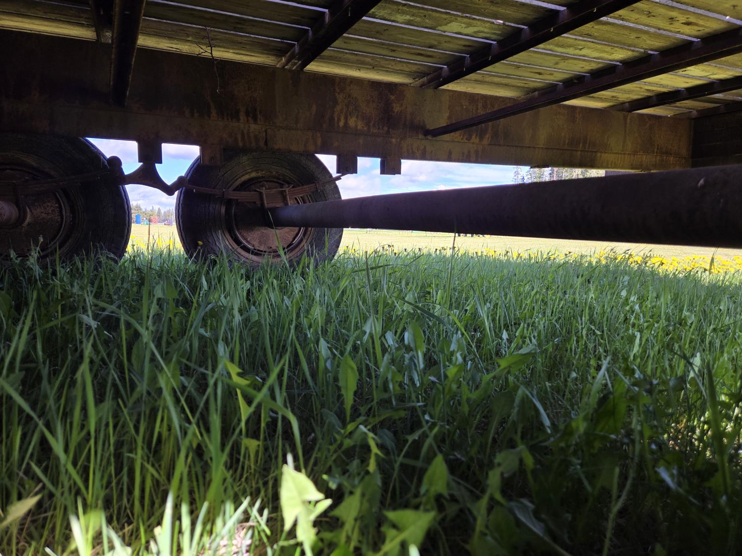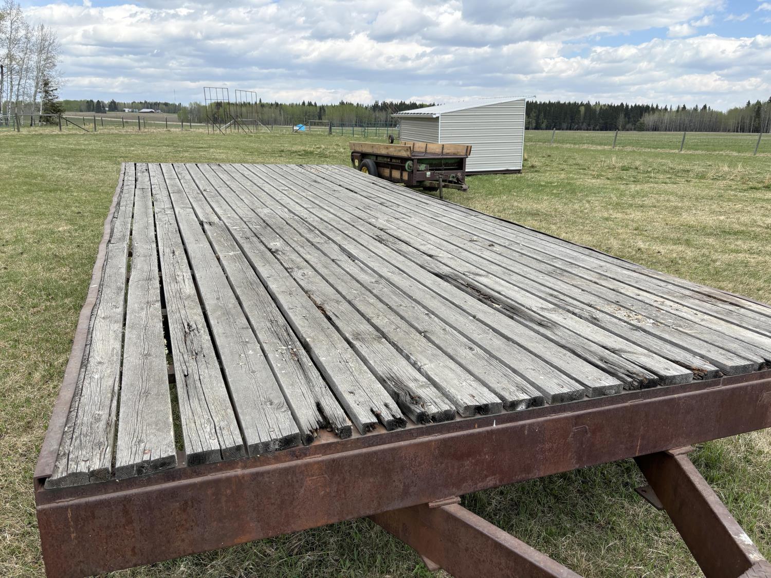 120 inch wide deck, wood deck, spring suspension, 8-14.5 tires