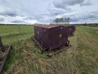 60 inch wide X 108 inch long X 48 inch high, include barrels, catwalk, on pipe skid with pallet fork pockets