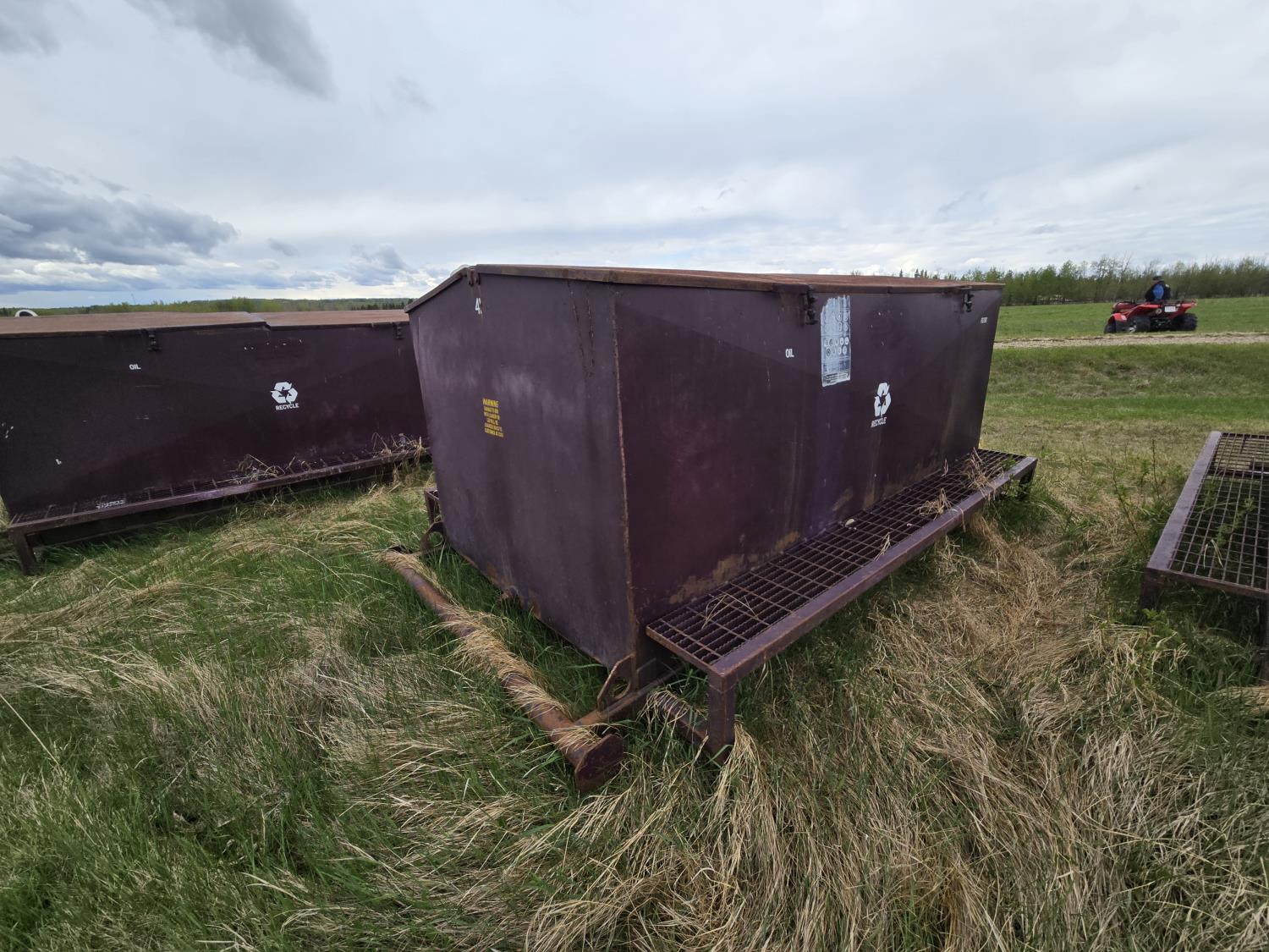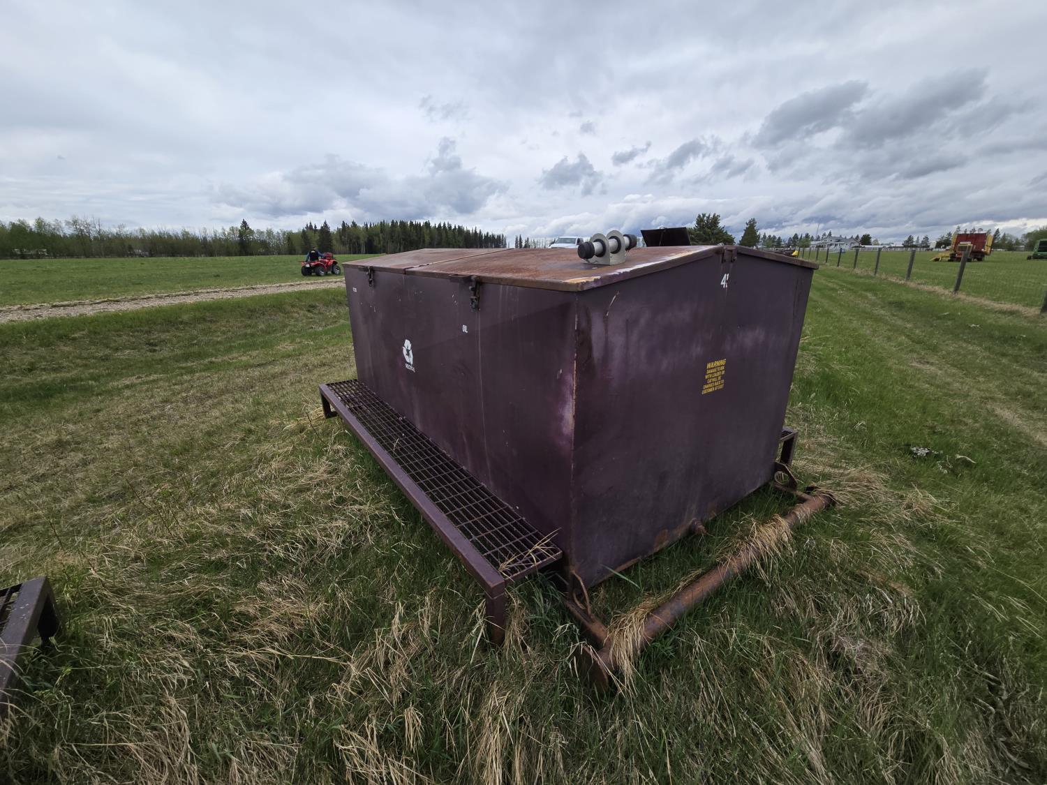 60 inch wide X 108 inch long X 48 inch high, include barrels, catwalk, on pipe skid with pallet fork pockets