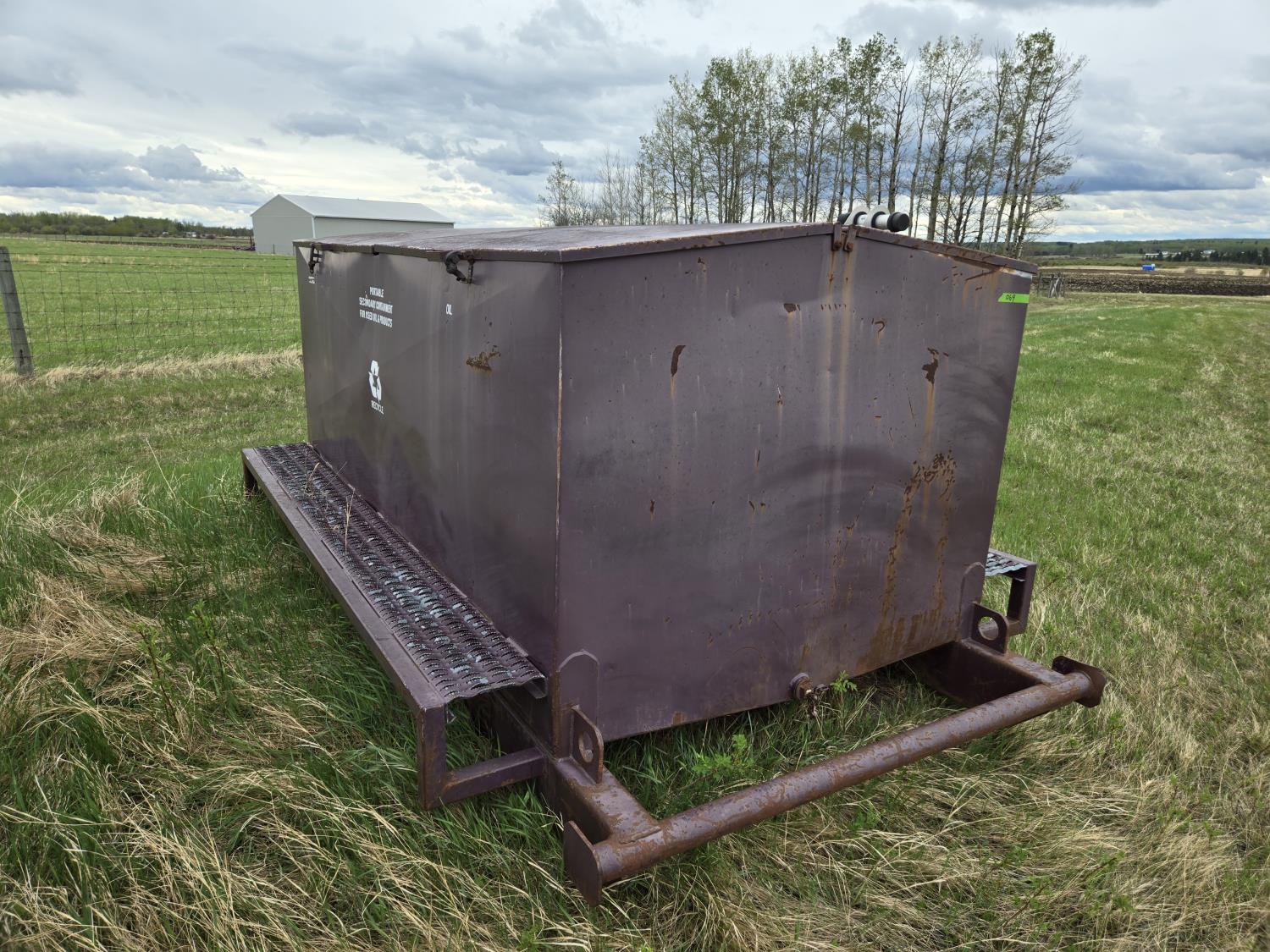 60 inch wide X 108 inch long X 48 inch high, include barrels, catwalk, on pipe skid with pallet fork pockets