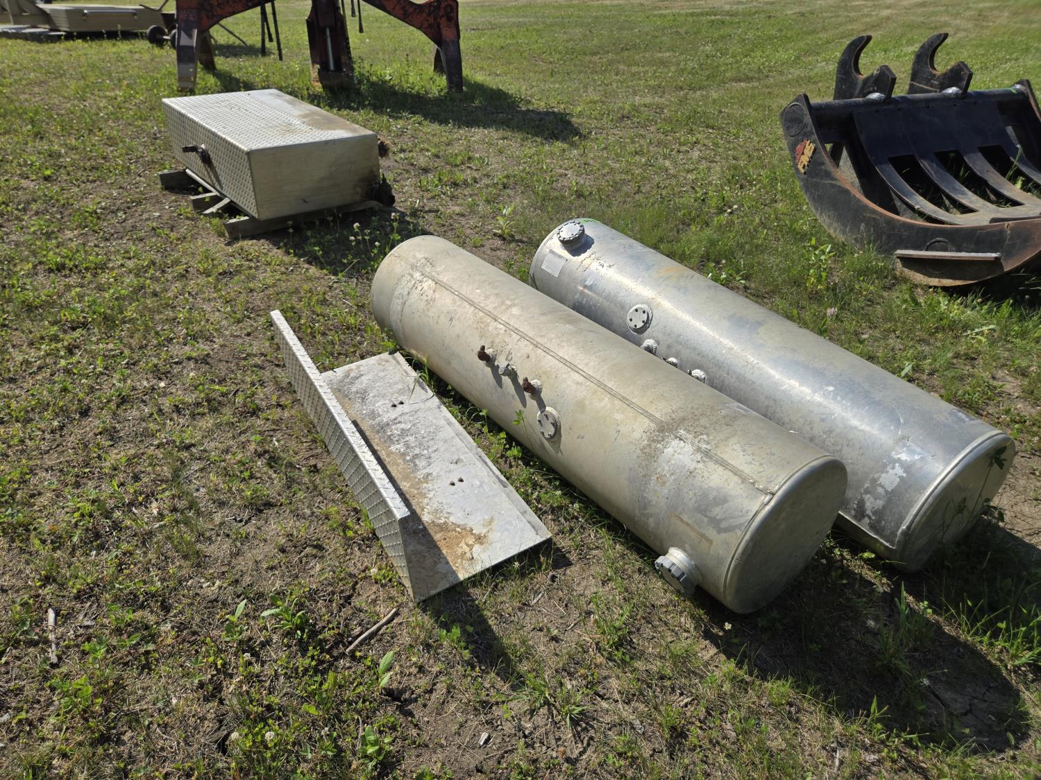 175 (2) Aluminum Fuel Tanks, Heavy Truck Battery Cover & Aluminum Oil Reservoir