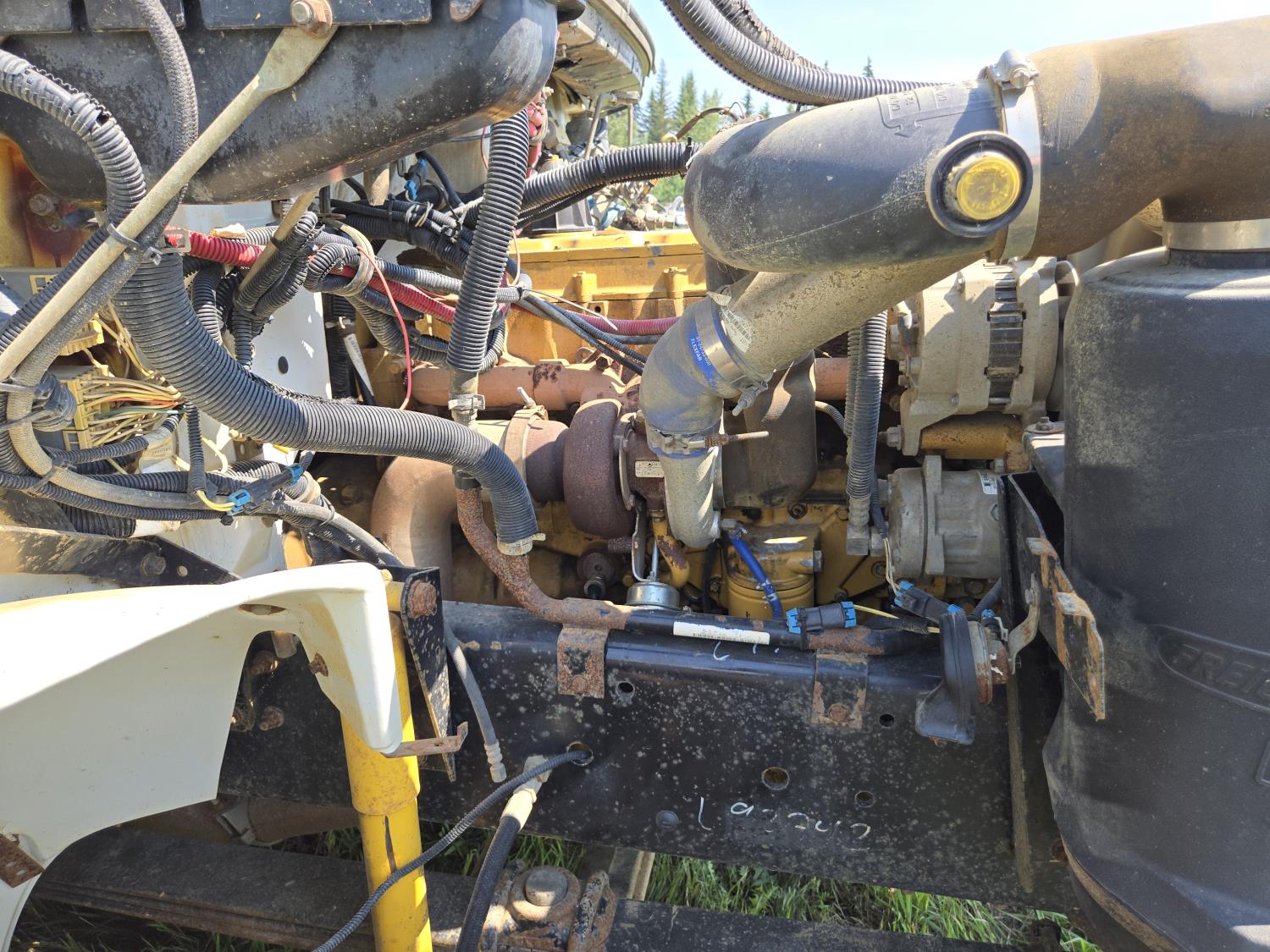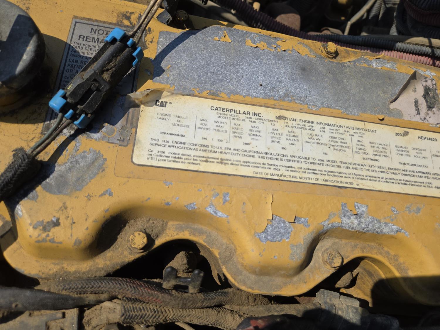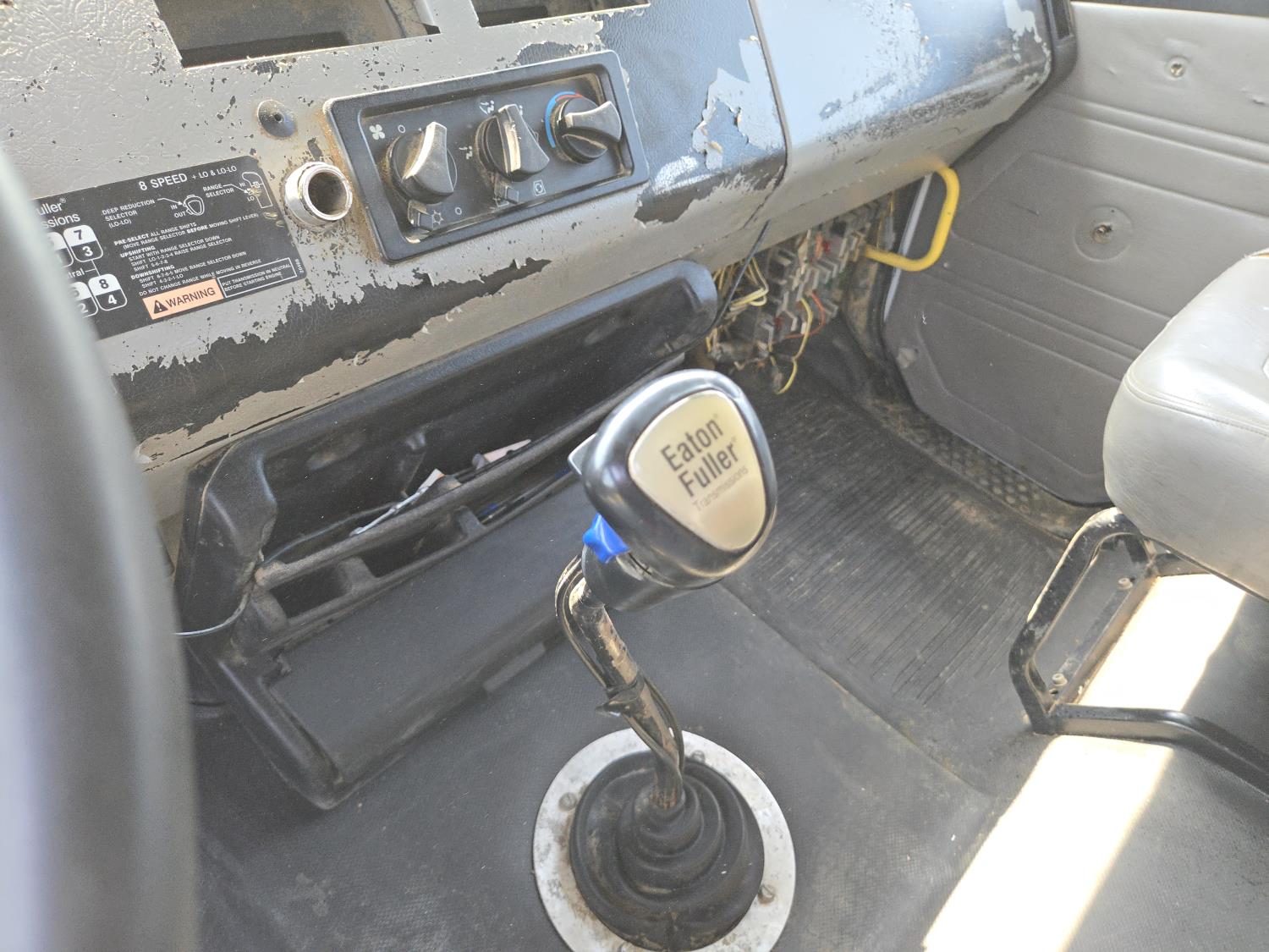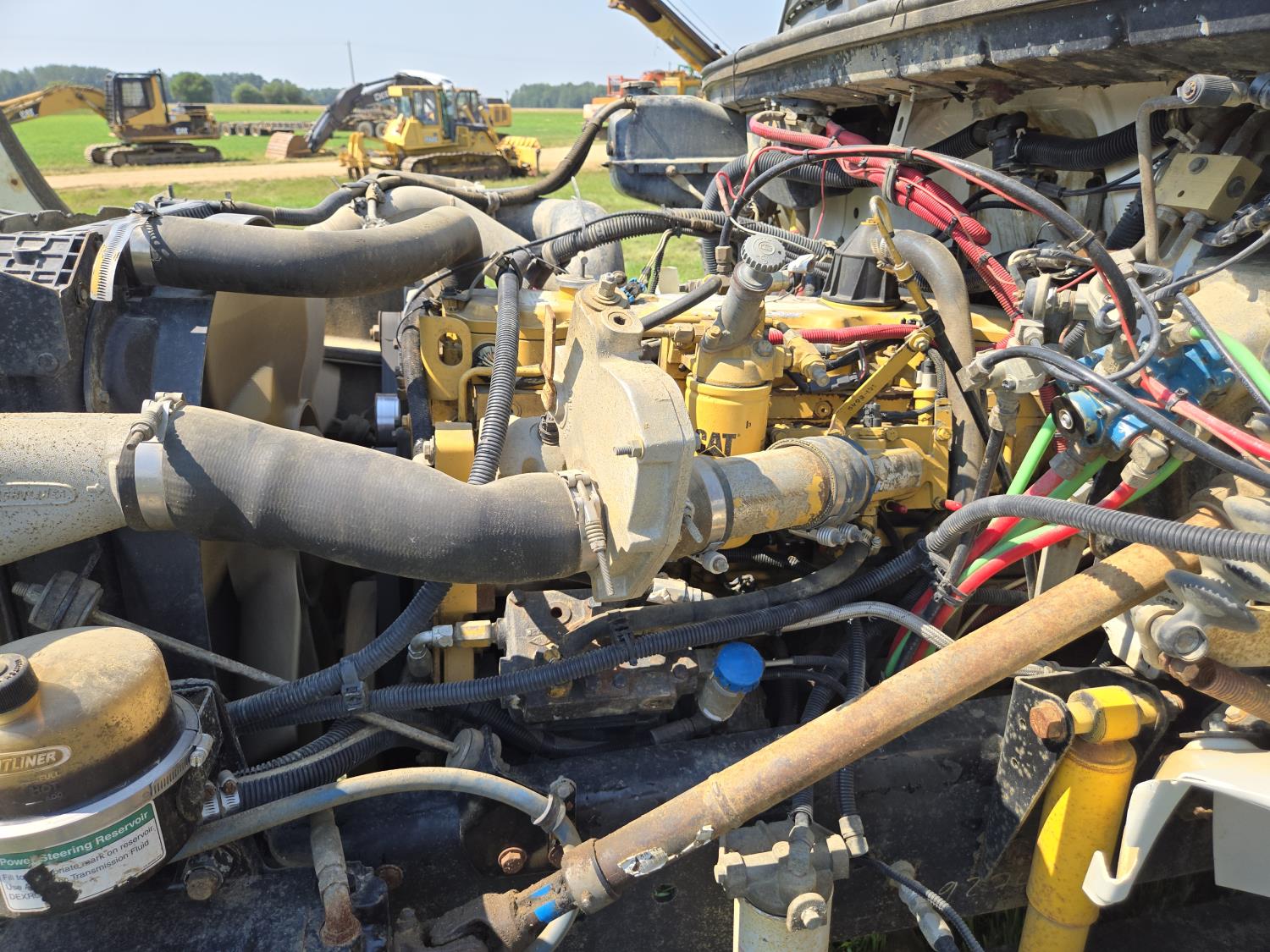 Caterpillar 3126 15 6 cylinder 330 HP engine, Eaton Fuller 8 speed manual transmission, A/C, 8 ft x 17 ft deck, wood deck, headache rack, air ride suspension, 11R22.5 tires