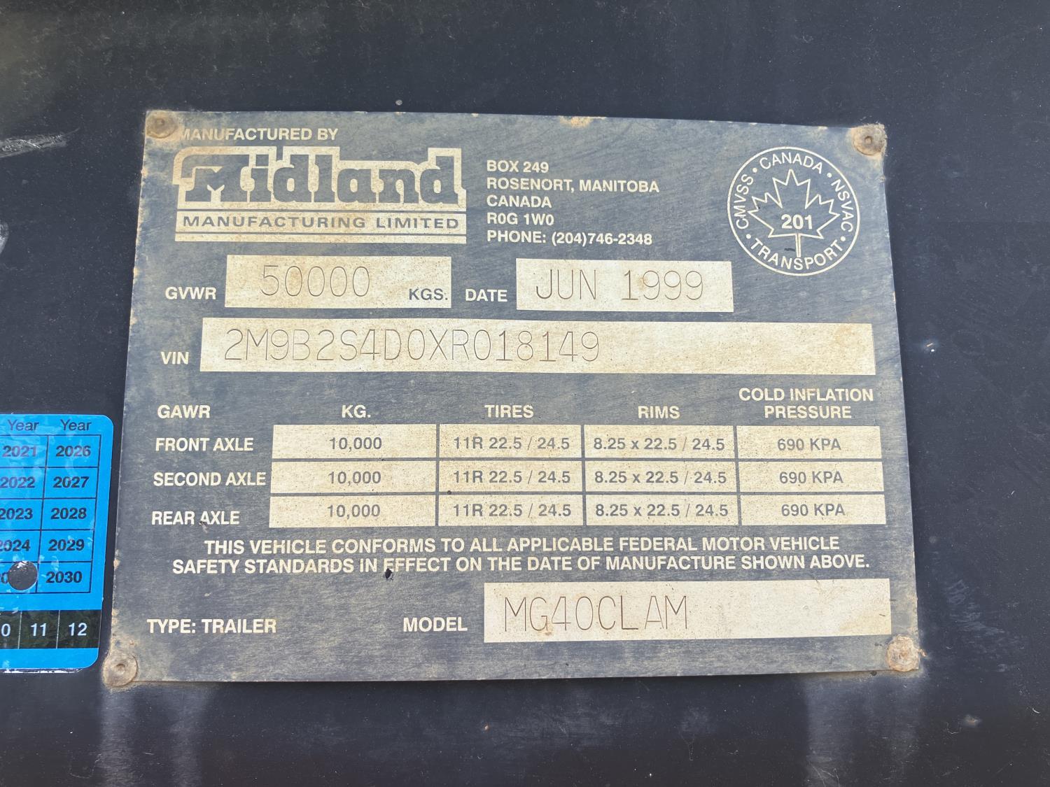 87 1999 Midland 40 Ft Tri-Axle Clam Bottom Dump Trailer