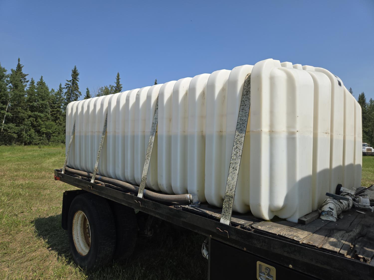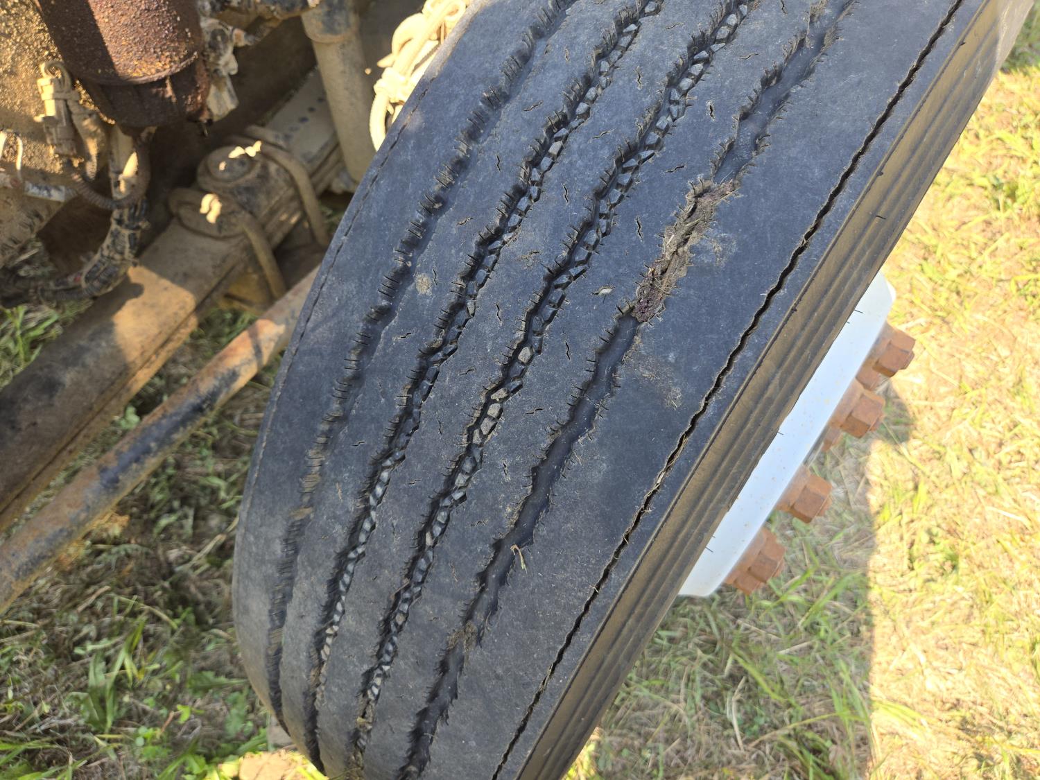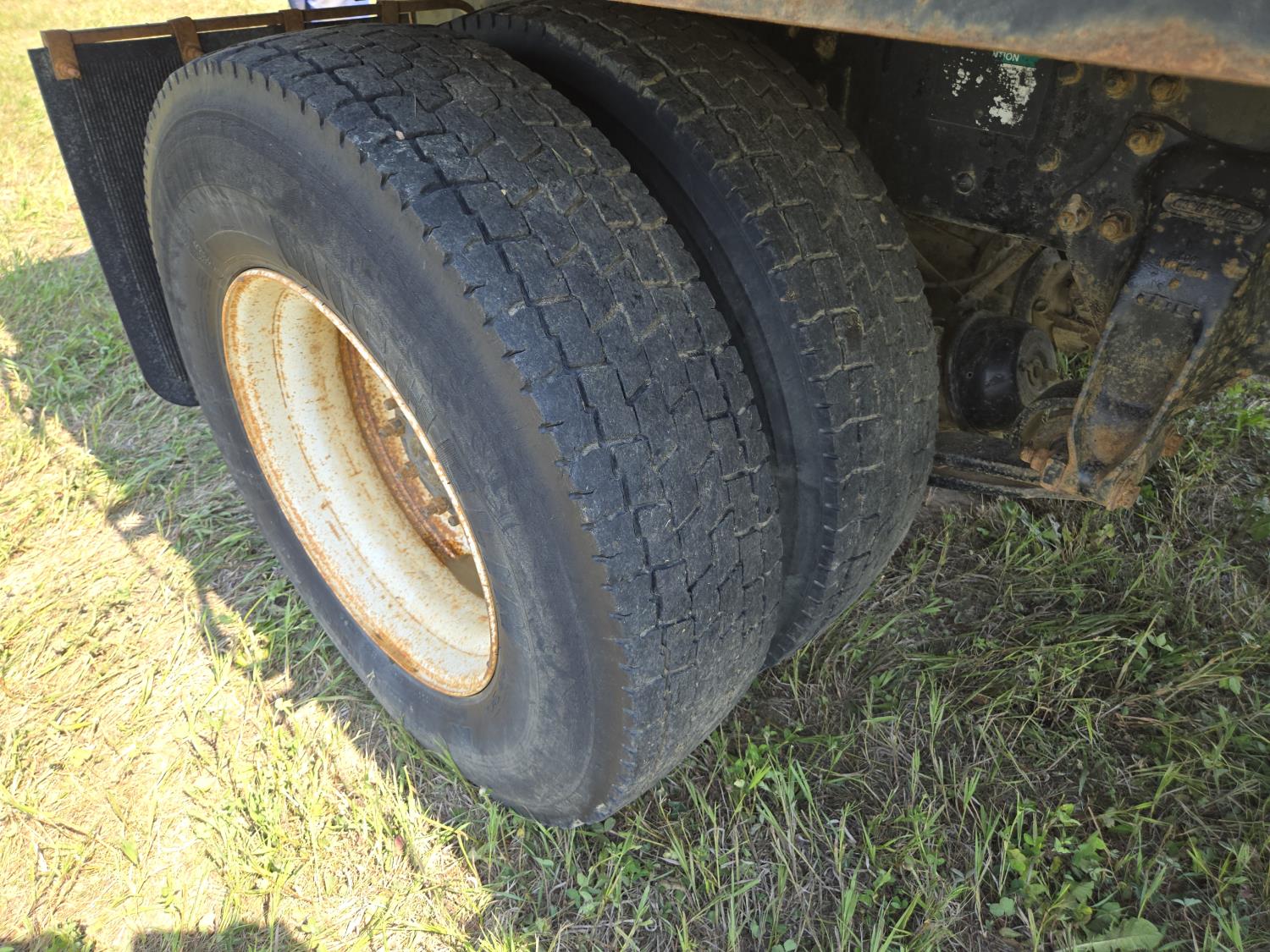 Cummins 24 VALVE 6 cylinder diesel engine, positive air shutoff, 6 speed manual transmission, 8 ft x 14 ft deck, poly water tank, spring suspension, air brakes, 12000 lb front axles, 23000 lb rear axle, 11R22.5 tires