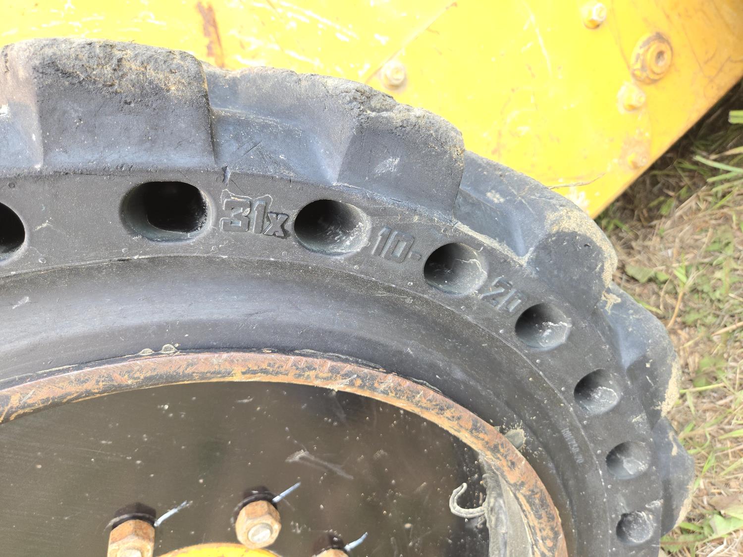 Enclosed cab, diesel engine, 72 inch smooth bucket, manual coupler, 1 auxiliary hydraulics, 31X10-20 solid tires
