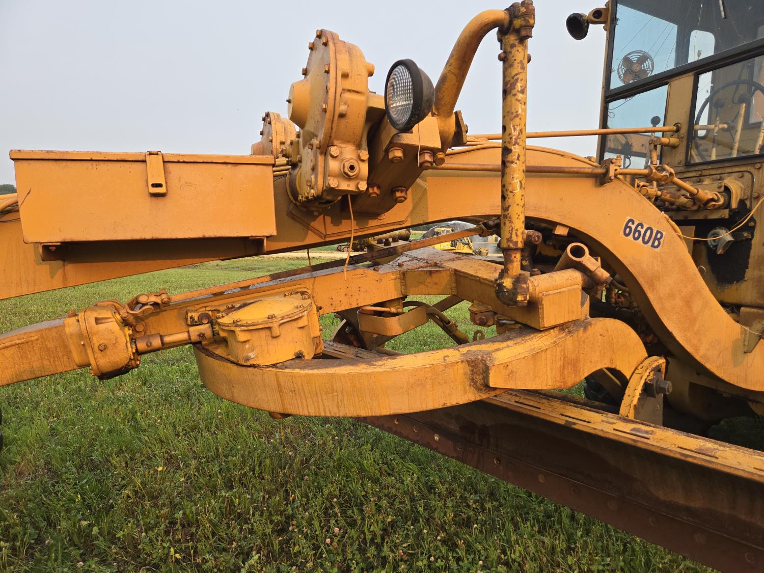 Enclosed cab, 14 Ft moldboard, Detroit diesel engine, hydraulic shift on moldboard, 14.00-26 tires