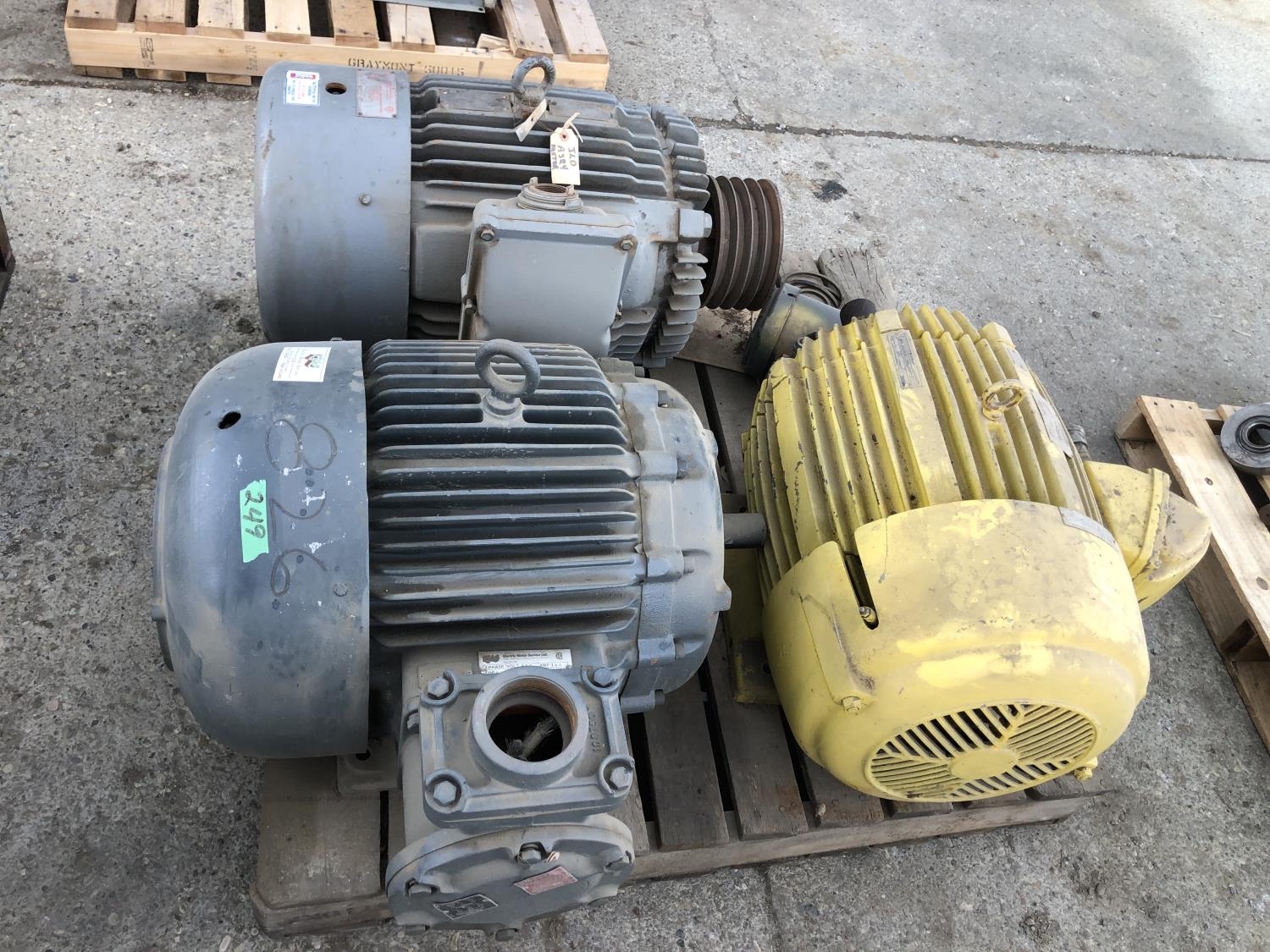 228 (3) Large Electric Various HP Motors, (1) GE 1 HP Motor
