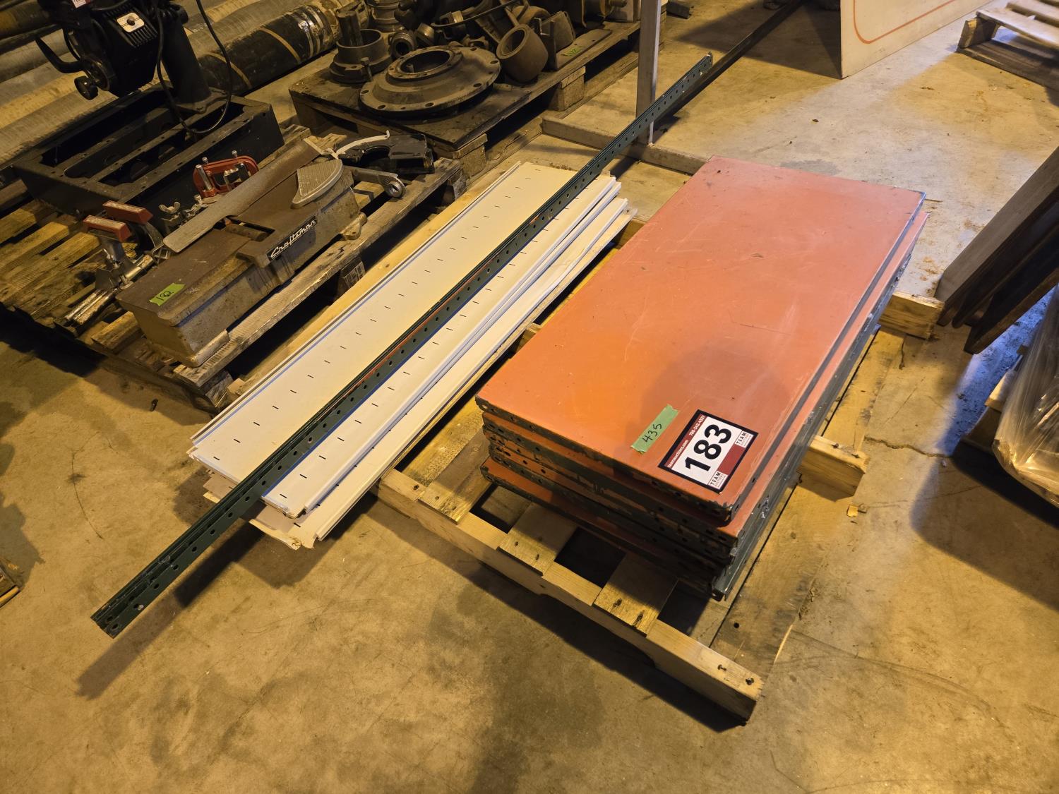 183 (7) 18 Inch X 36 Inch Metal Shelves with (4) 84 Inch Corner Posts