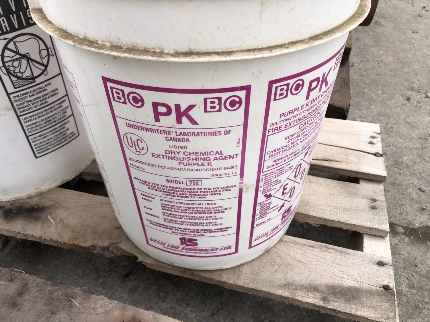 (2) 5 gallon pail of ABC Multi purpose dry chemical, (2) 5 gallon pails of Purpek dry chemical, (1) part pail of Univis N15