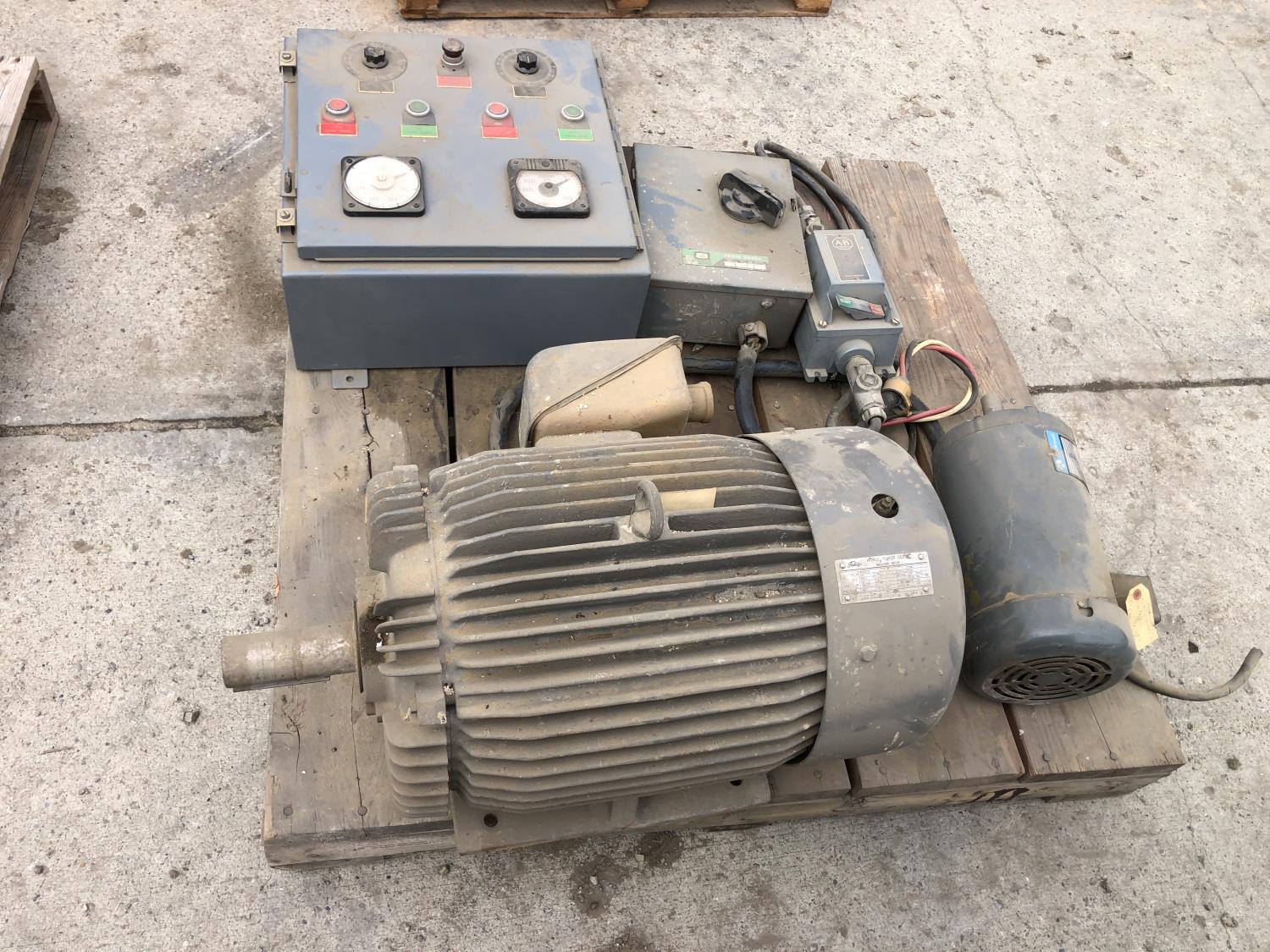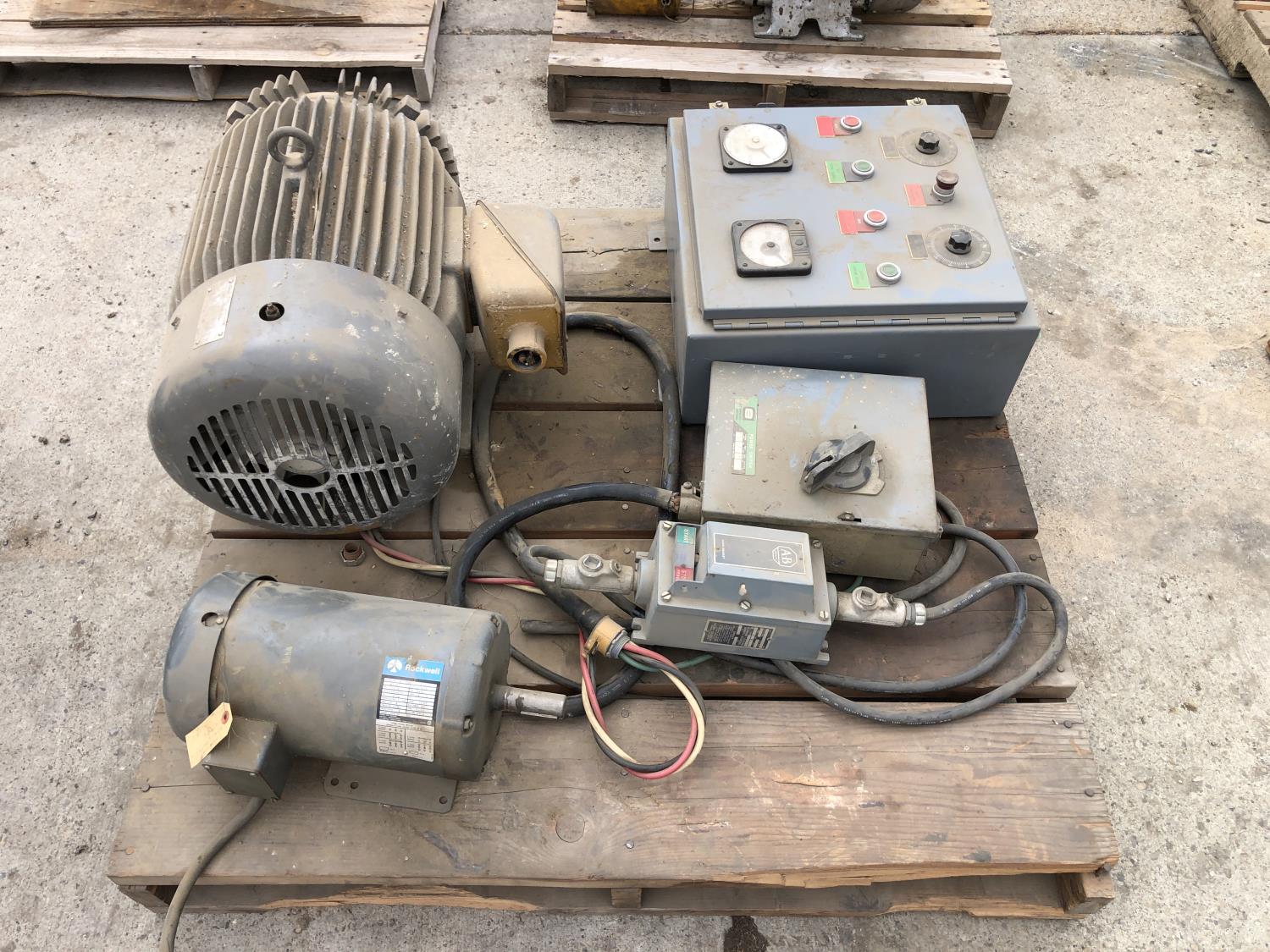 Rockwell 7.5 HP motor, control panel, Toshiba induction motor, electrical power switch box