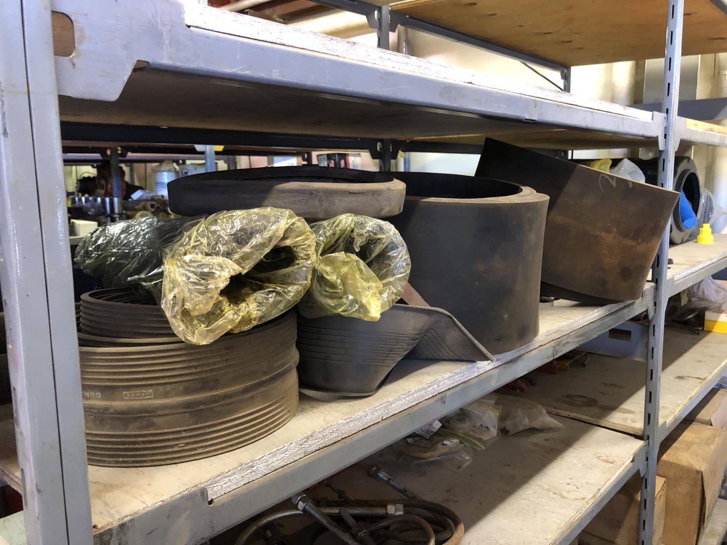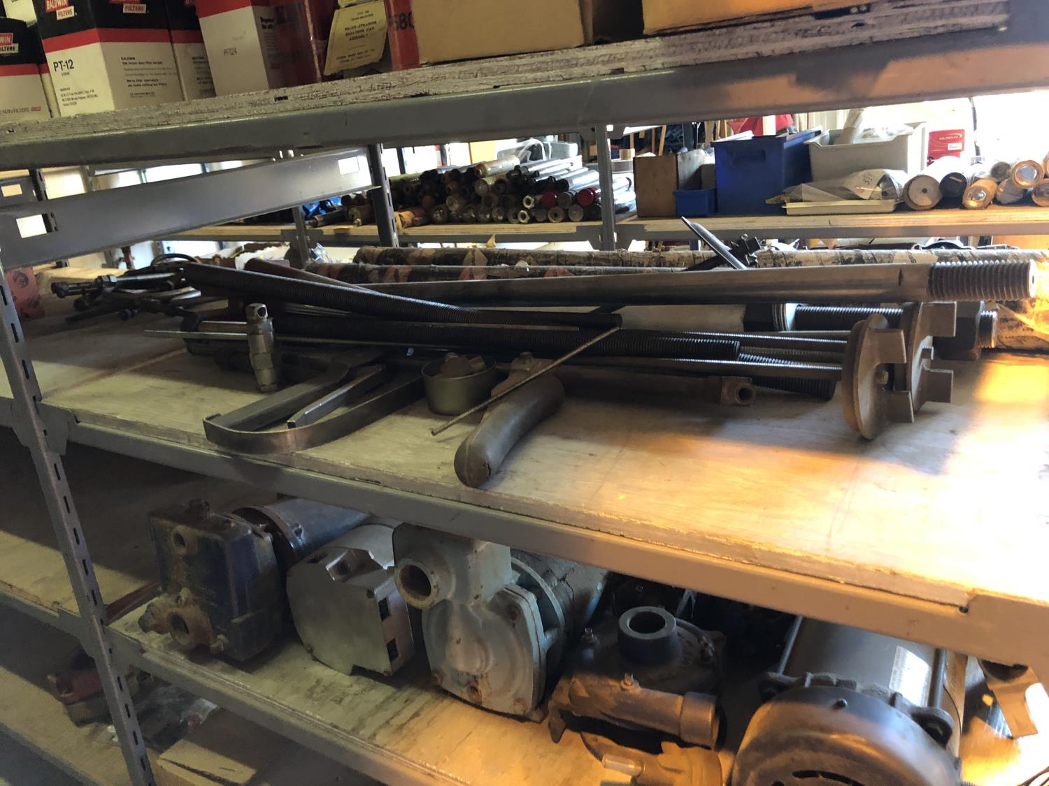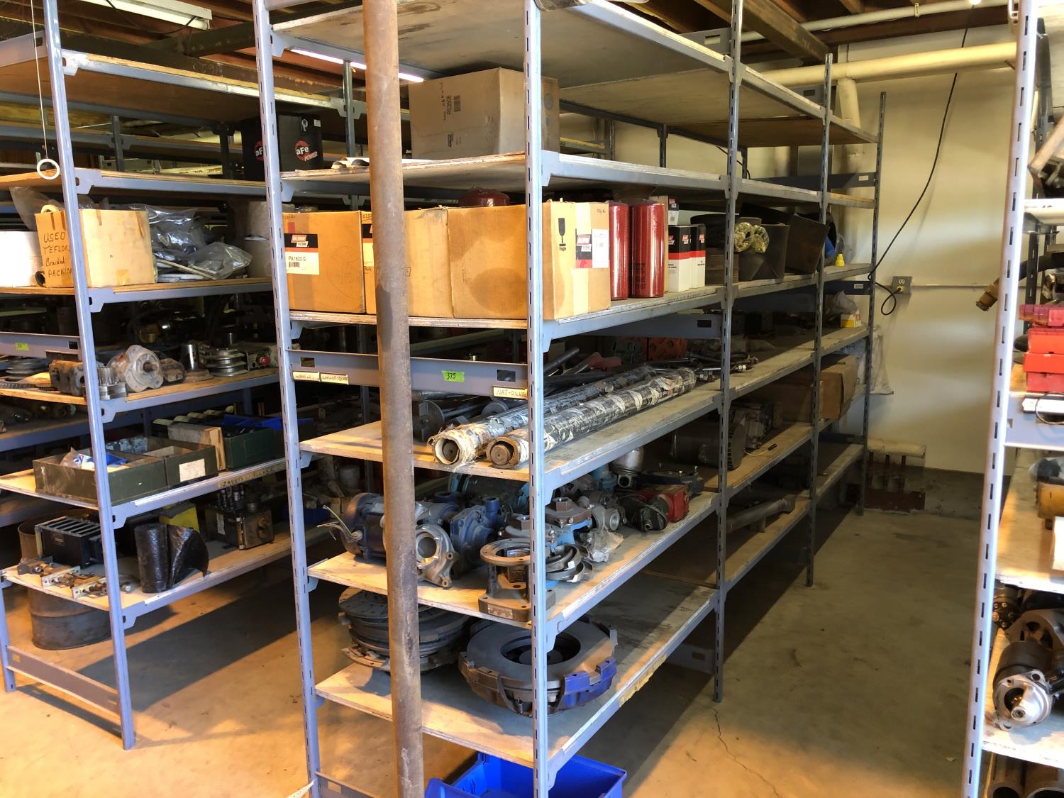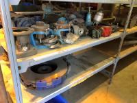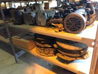 U-clamps, motors, valves, valve ends, belts, control panels, mis hardware, clutch plates (shelves not included)