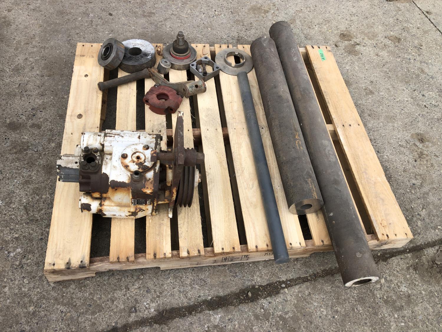 4.5 inch X 52 inch Shaft, 5 inch X 35.5 inch shaft, Sunstrand hydraulic motor, crank handle, miscellaneous parts