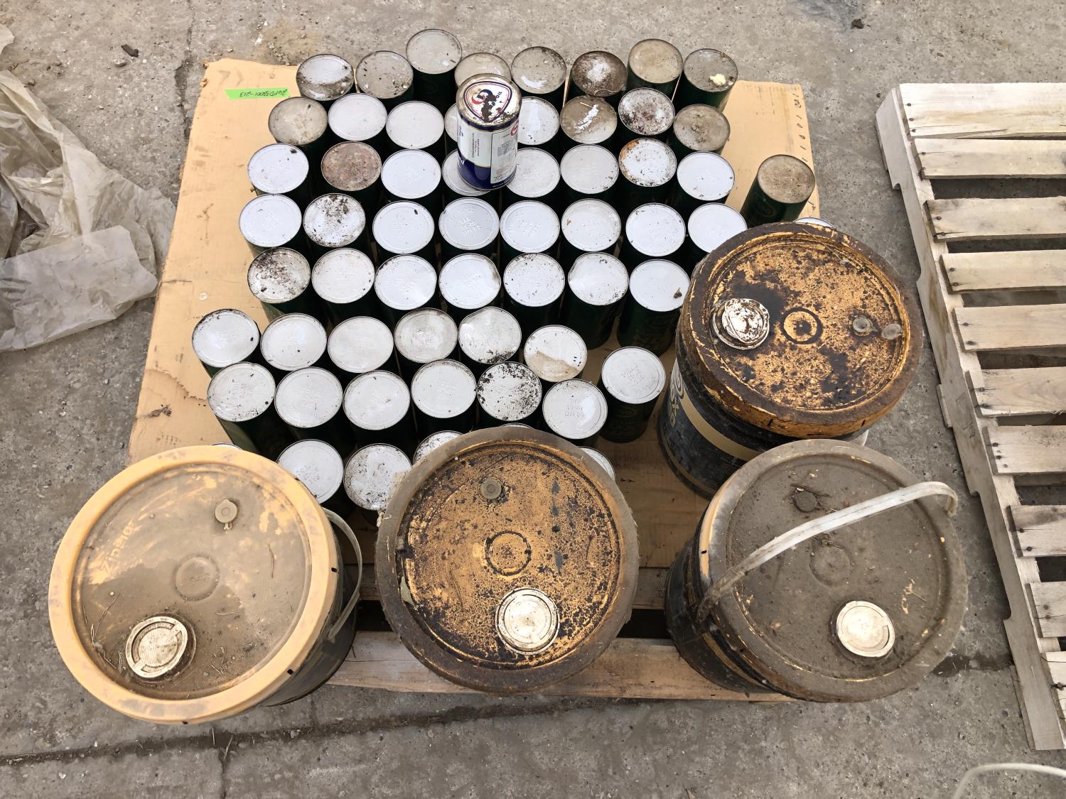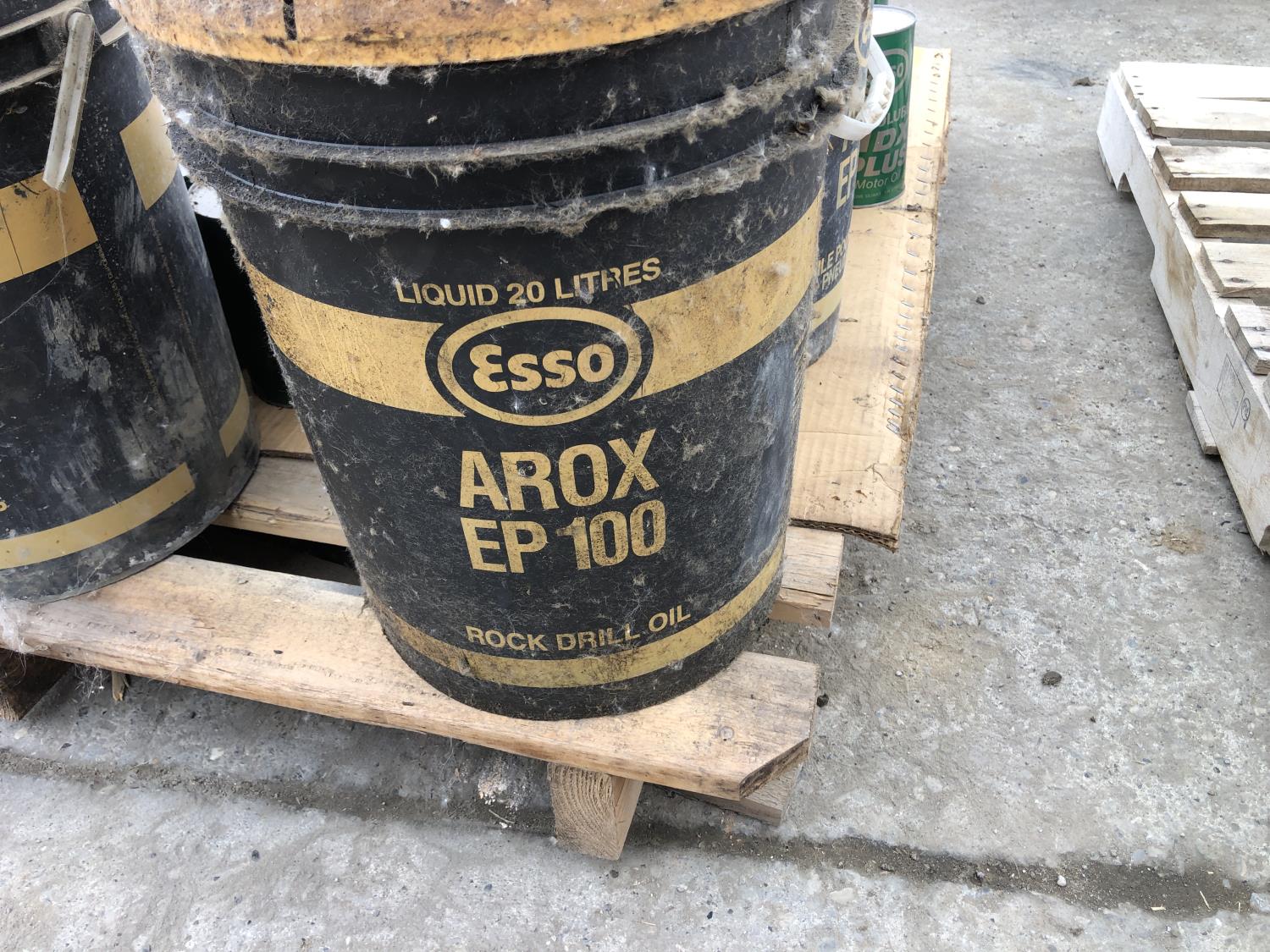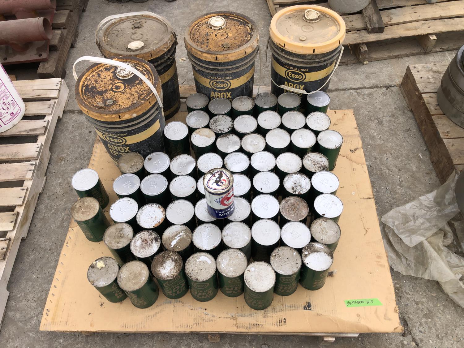 (61) 1.14 liter cans of Esso Lube HDX plus motor oil, (14) quart of red ram motor oil, (4) 20 liter part pails of Esso EP100