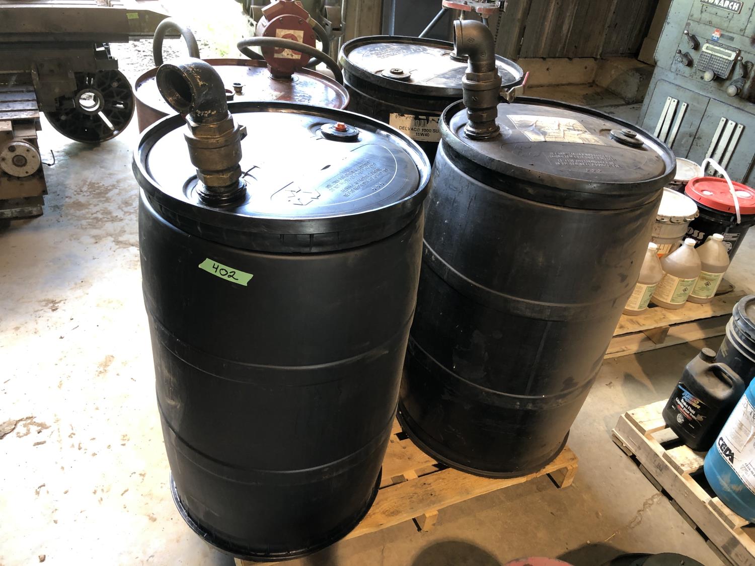 (2) 45 gallon Mobil Delvar 15W40 engine oil, (1) 45 Gallon Delvar synthetic gear oil, (1) 45 gallon barrel Esso XD-3 30 engine oil, all part full