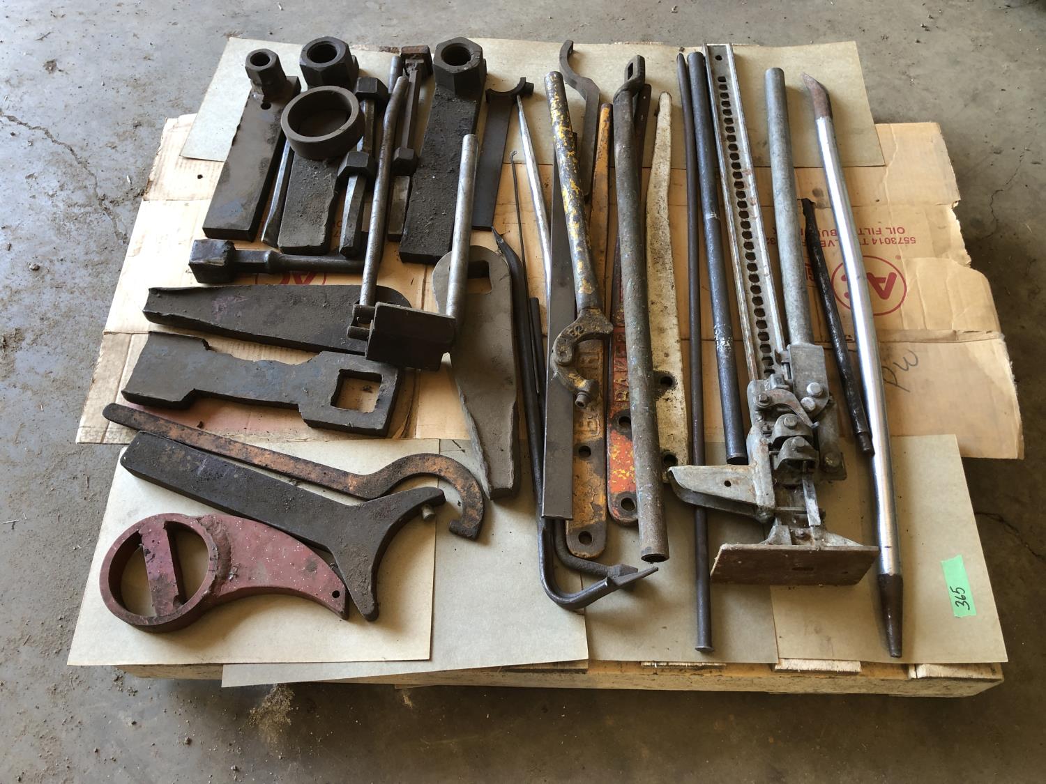 Jackall, pry bars, various hammers and wrenches, miscellaneous tools