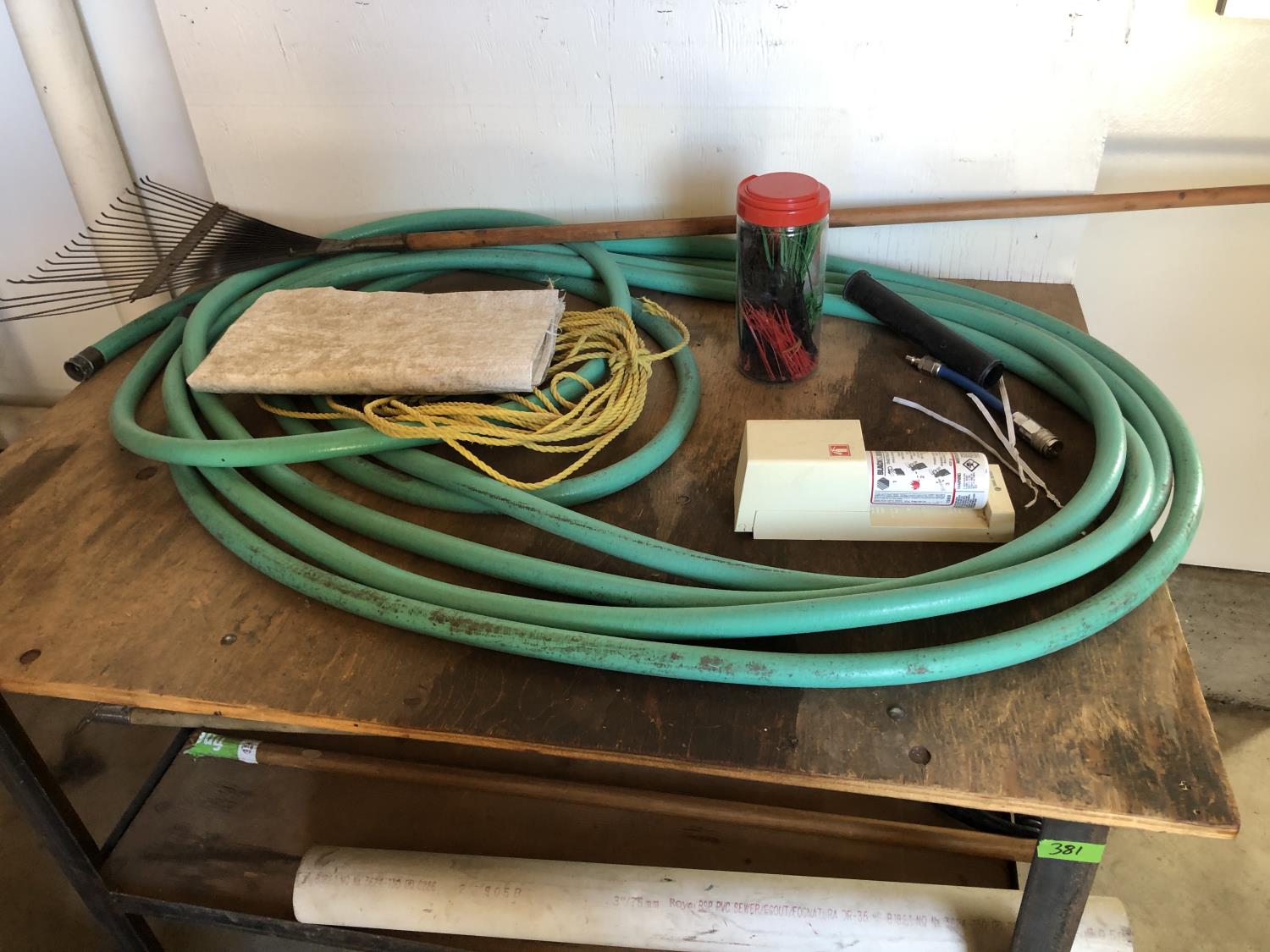 garden hoses, hand tools, zip ties