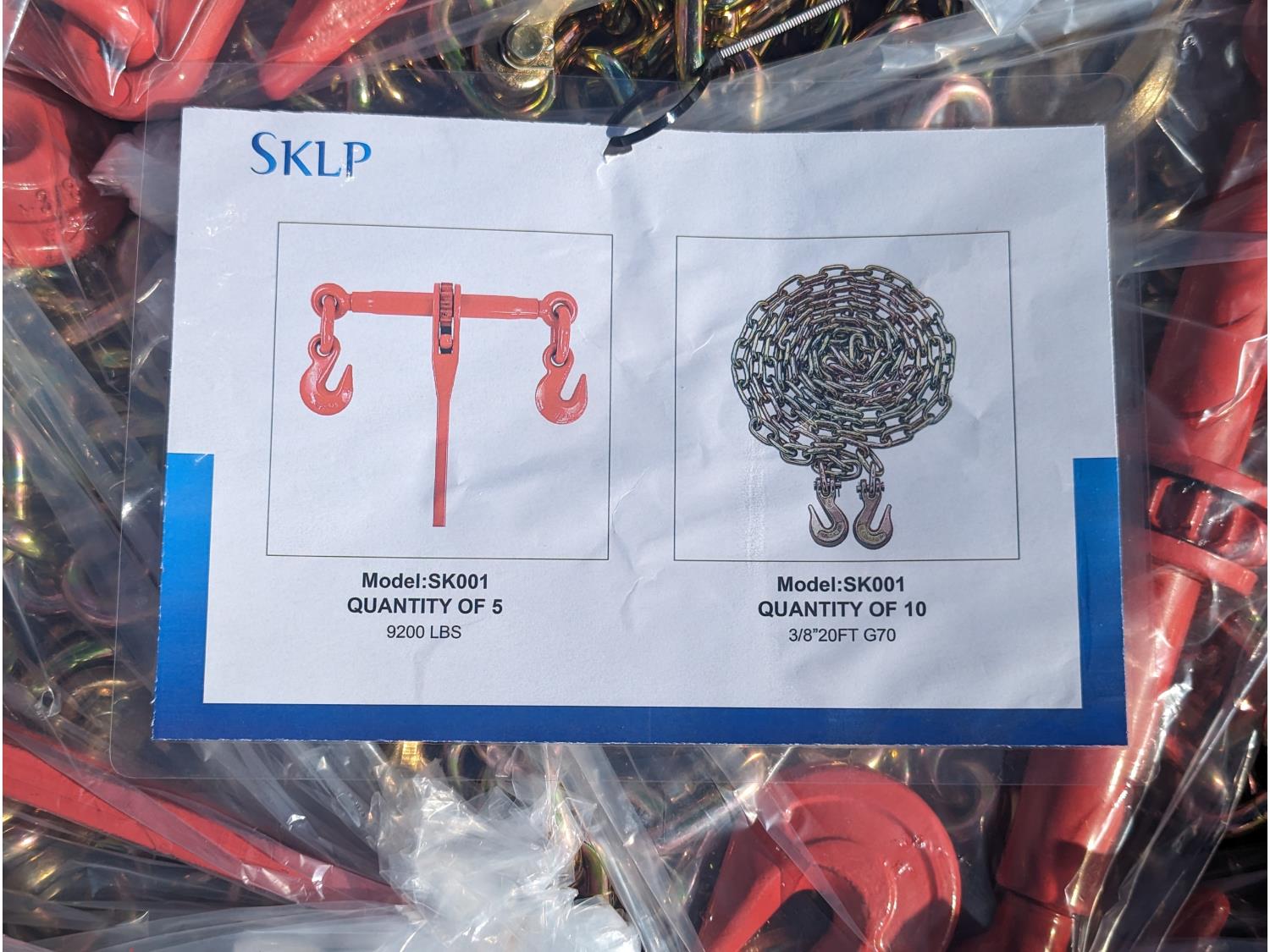 1009 2024 SK001 (5) Rachet Binders & (10) 3/8 Inch X 20 Ft Chains (Unused)