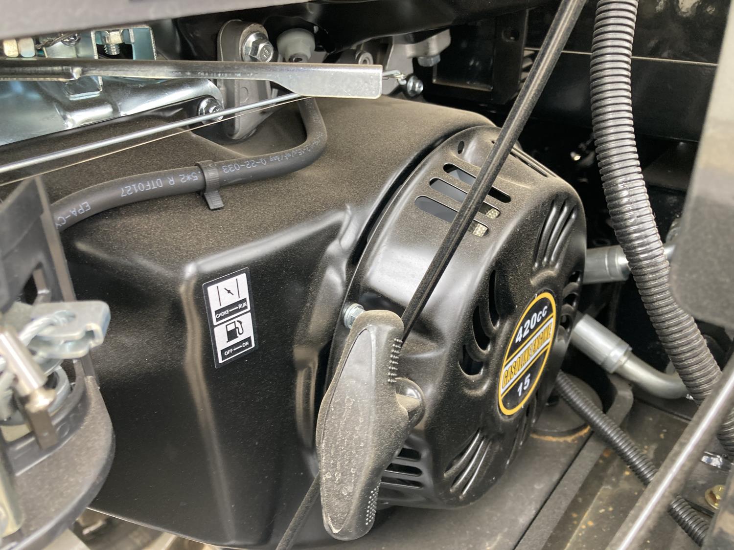 Open station, 13.5 HP gas engine, 16 inch dig bucket, manual thumb, 31 inch stick, bucket capacity 0.03 cubic meters, maximum digging depth 65 inches, maximum digging height 94.5 inches, maximum digging distance 118 inches, lift capacity 220 Lbs, 7 inch rubber tracks