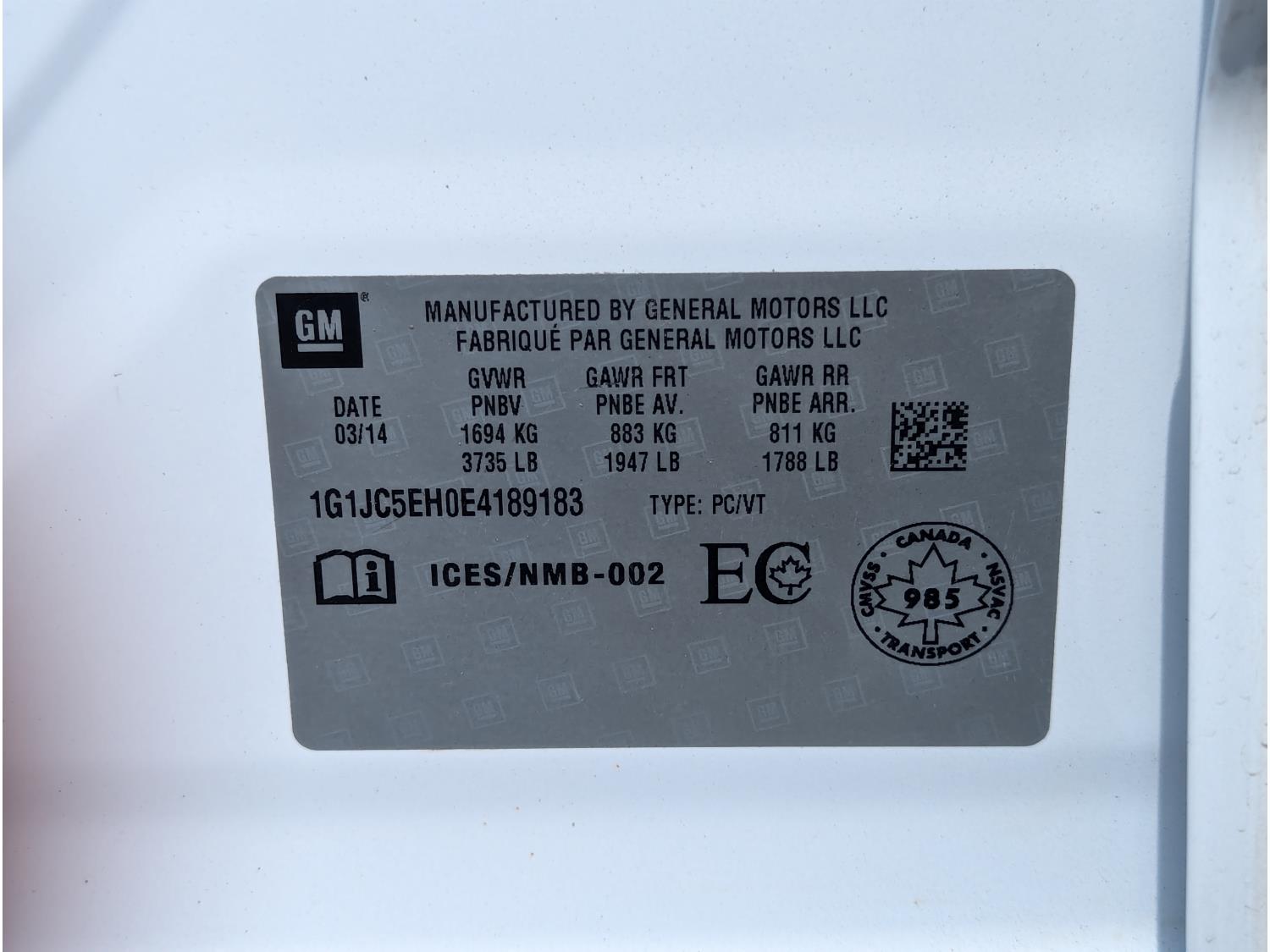 - 1G1JC5EH0E4189183