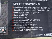 7 ft Peak Height, Side Entry Door, 185 Sq-Ft Floor Space