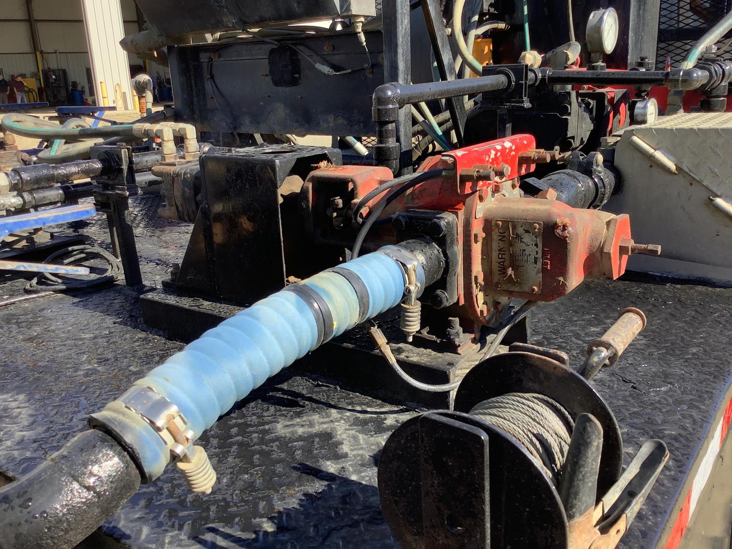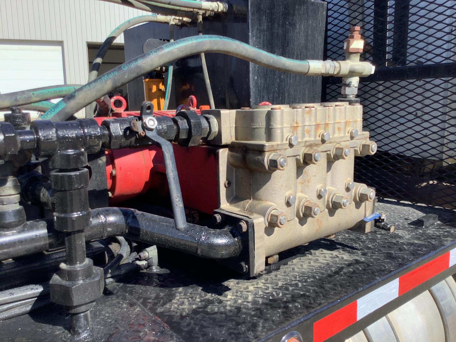 DD15 Detroit engine, positive air shut off, 18 speed transmission, air ride suspension, 16,000 lb front axle, 46,000 rears, full lockers, all aluminum rims, 285/65R22.5 front and 11R24.5 rear tires, current CVIP, Hamms 2 compartment 10,000 Liter tank TC406 code max pump pressure for giant pump 4500 PSI, max pumping rate for the big pump is 180 Liter/ minute, max test pressure for little giant pump 10,000 PSI, max pumping rate for little giant pump 30-Liter per minute, max pumping rate for 3- inch roper pump 300-Liter per minute