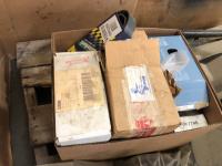 Stanley work light, (2) large pipe wrenches, (2) warning triangles, (3) truck light units (unused), (2) diesel filters, miscellaneous truck parts