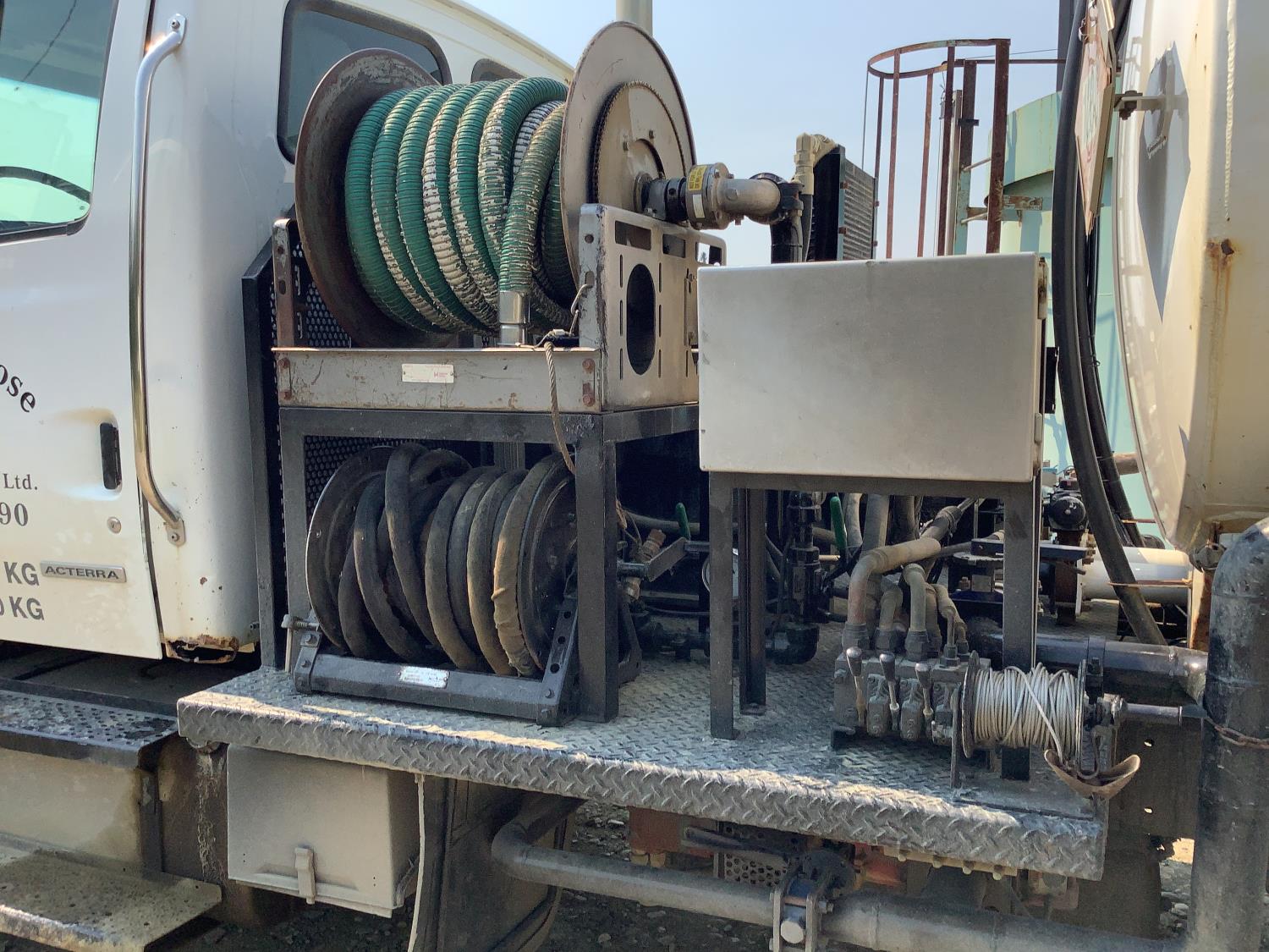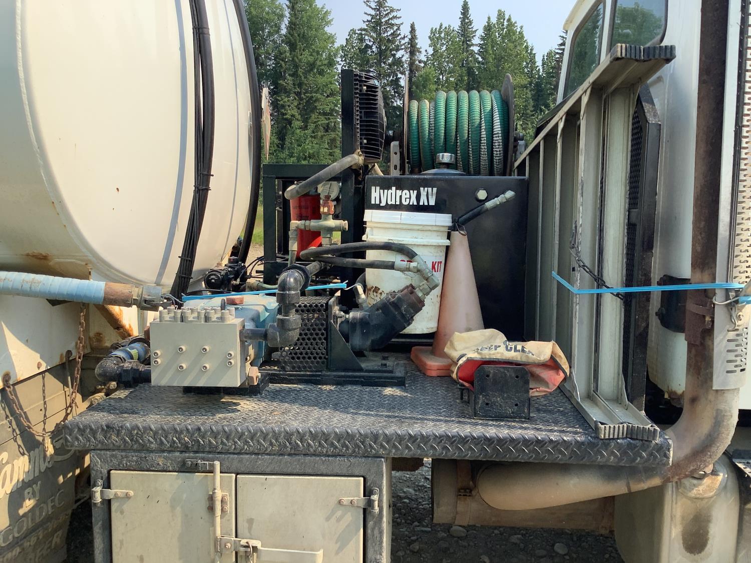 Caterpillar C-7 300 HP single turbo engine, positive air shut off, 8LL transmission, air ride suspension, 12,000 lb front axle, 40,000 rears, 3 way lockers, 11R22.5 tires, Hamms 2 compartment with 5175 liter capacity in each compartment, Roper 3 inch hydraulic drive pump 300 liters per minute, max pumping pressure 4500PSI, max testing pressure 5,000 PSI, max pumping pressure with CAT pump 60 liters per minute
