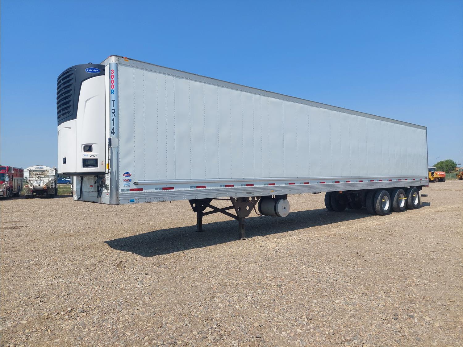 8 ft 6 inch van width, 114 inch height, Carrier reefer, reefer chute, rear swing doors, 2 speed landing gear, air scales, skirt, insulated, air ride suspension, 20,000 lb axles, all aluminum wheels, 11R22.5 tires