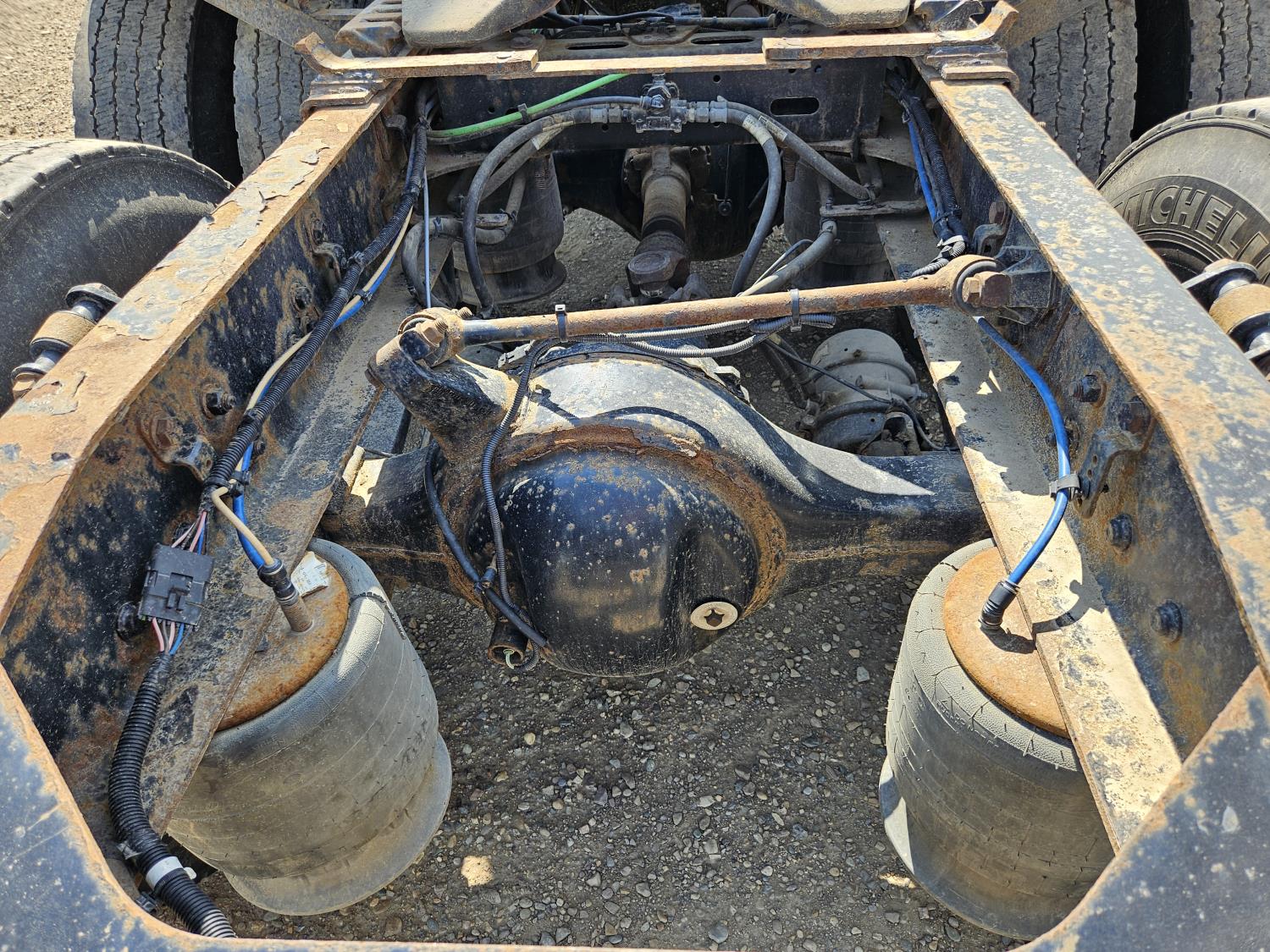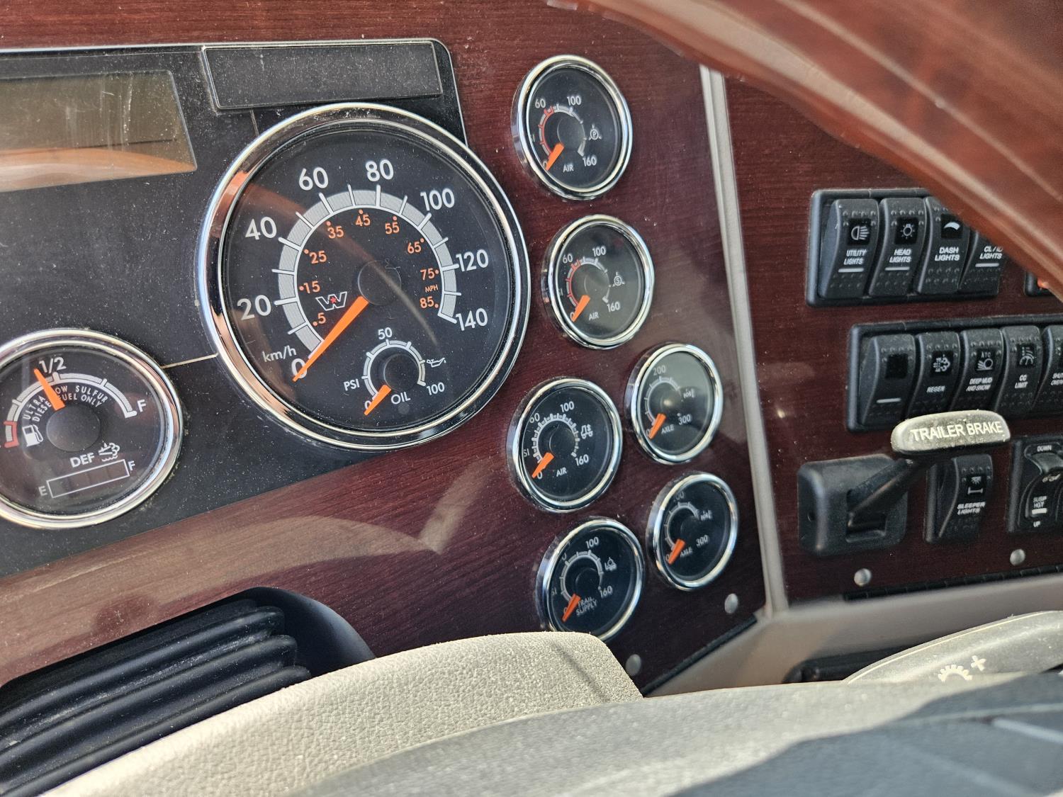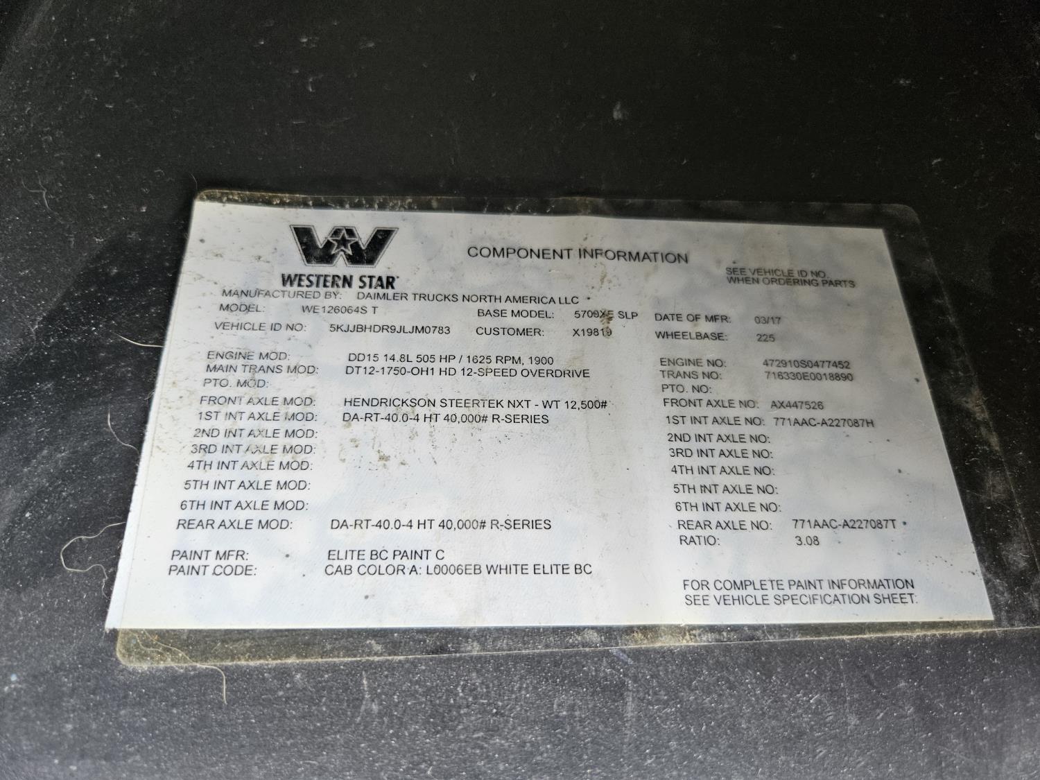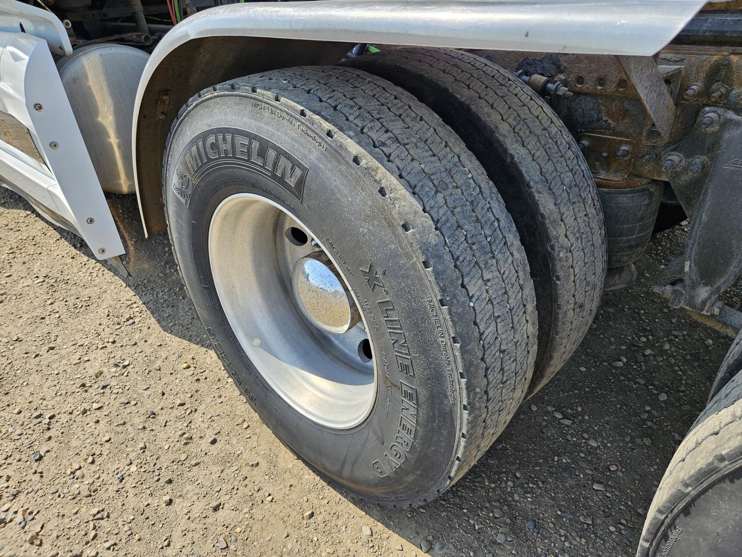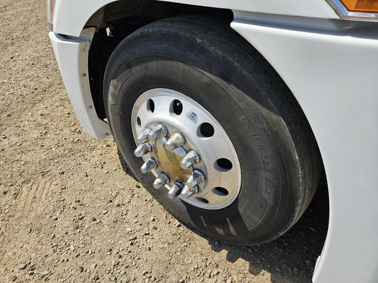 Detroit DD15 14.8 L 6 cylinder 505 HP engine, DEF required, engine brake, engine block heater, DT12 12 speed automatic transmission, Webasto cab heater, high rise 64 inch sleeper, fridge, A/C, cruise control, leather interior, air ride seats, radio, CB radio, stereo, air ride cab, air ride suspension, 12,500 lb front axle, 40,000 lb rear axles, full lockers, 3.08 ratio, 225 inch WB, all aluminum wheels, 11R22.5 tires