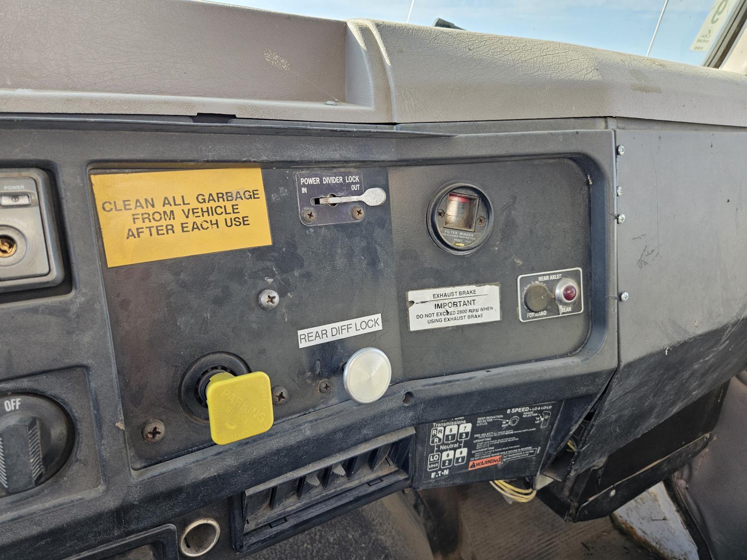 International 8.7 L 6 cylinder engine, engine brake, engine block heater, Eaton Fuller 8LL 8 speed manual transmission, A/C, cruise control, stereo, hydraulic wet kit, 20 ft box, differential lock, 266 inch WB, 385/65R22.5 front tires, 11R22.5 rear tires