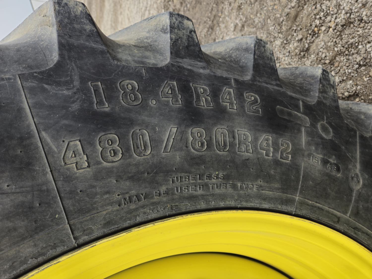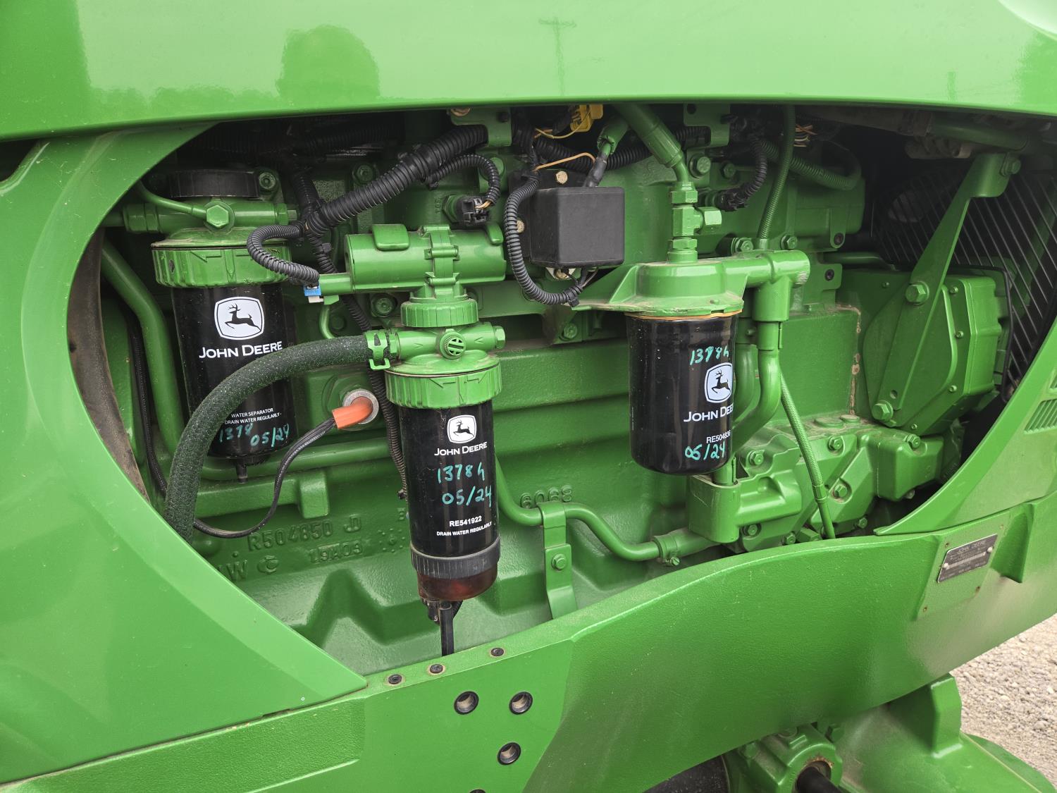 John Deere 6.8 L 6 cylinder 175 HP, engine, 140 PTO HP, IVT transmission, cab, left hand reverser, A/C, radio, buddy seat, 12 front weights, 540E / 540/1000 / 1000E PTO, 3 point hitch, 5 rear hydraulic outlets, case drain, 14.9-30 front tires, 480/80R42 rear tires, front weights
