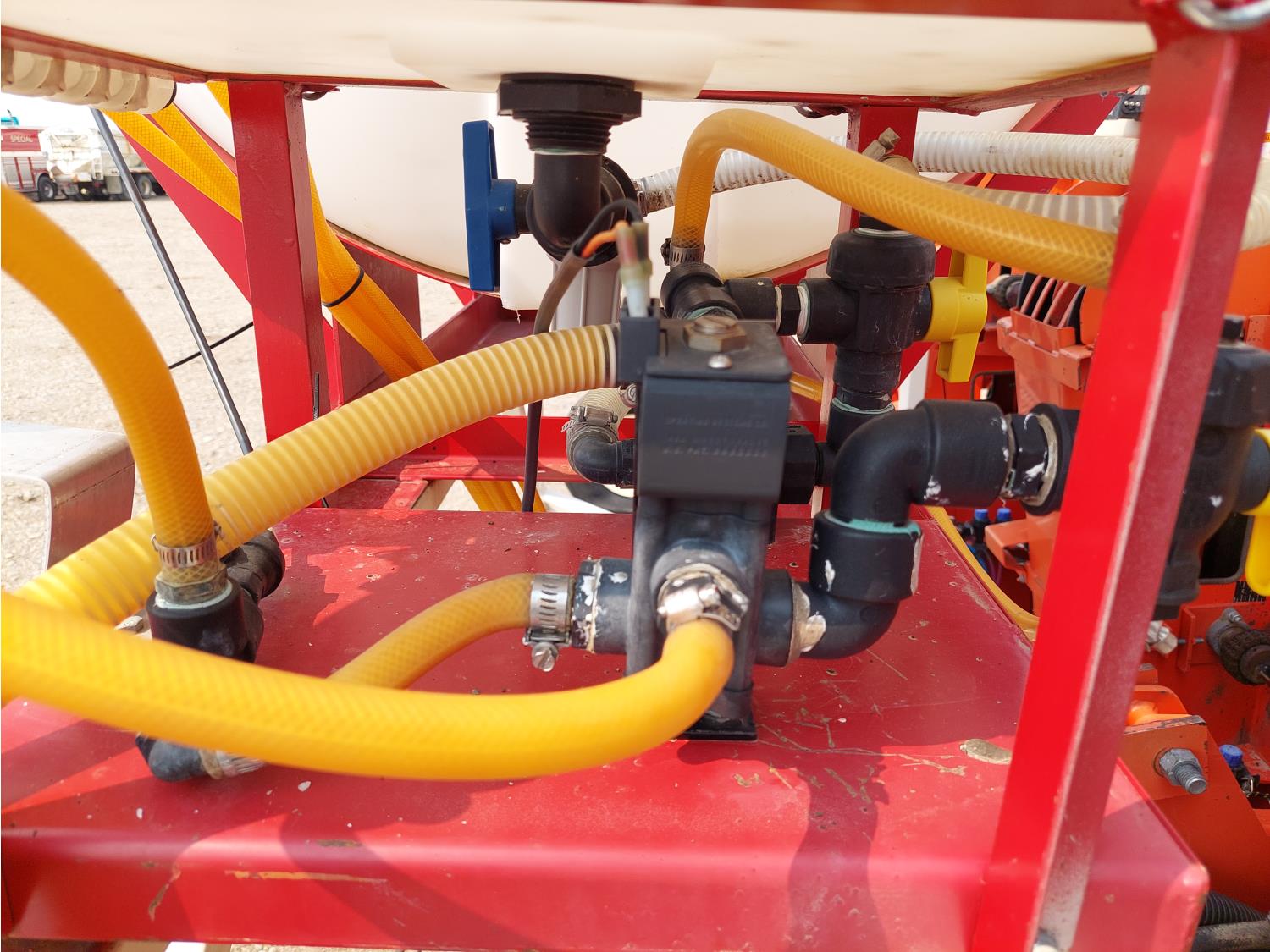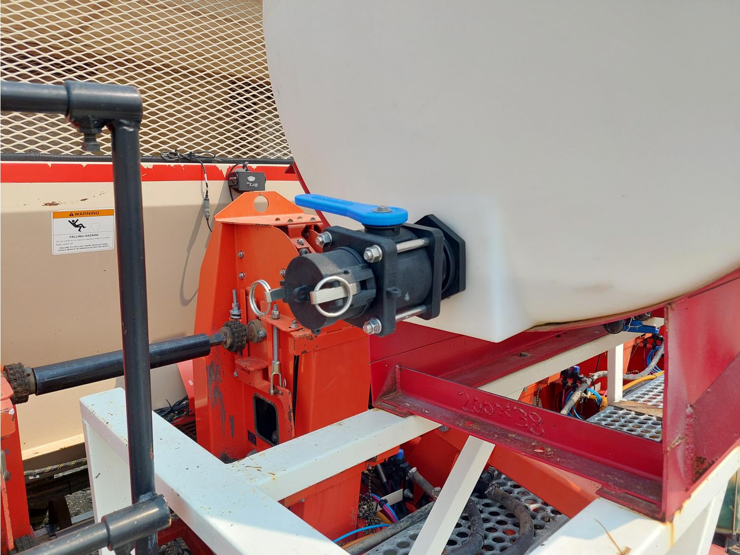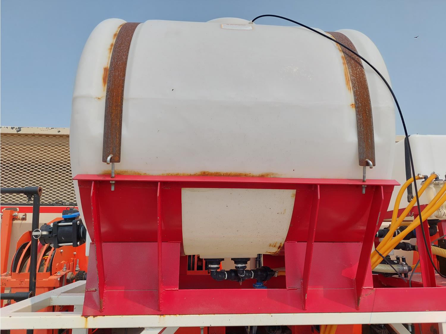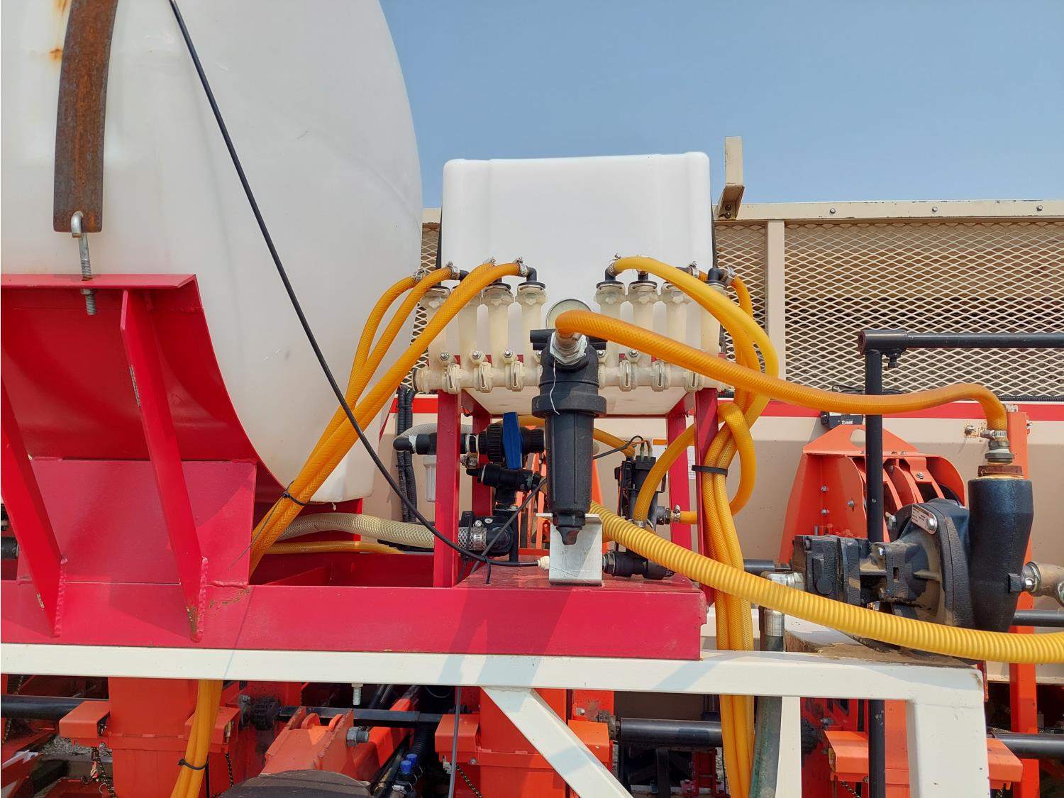 8x36 inch, large hopper, integrated fertilizer tanks behind bunker, chemical tank w/ pump setup, catwalk