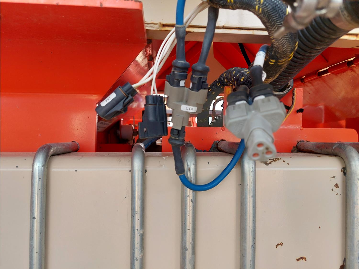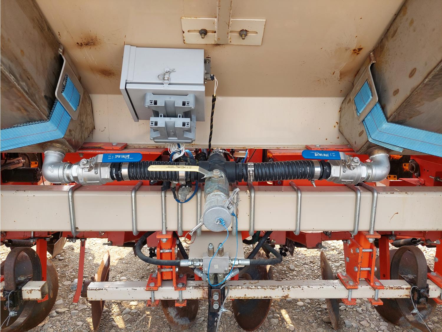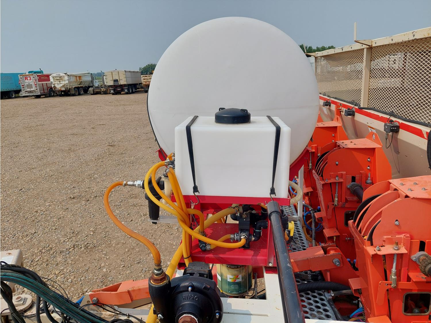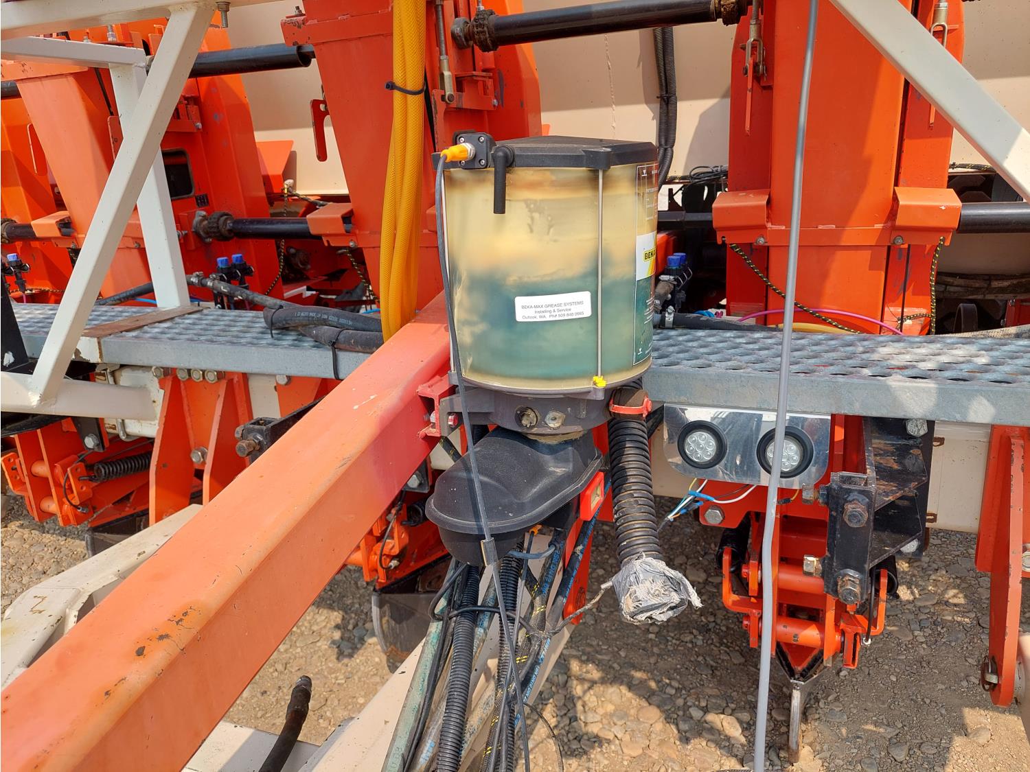 8x36 inch, large hopper, integrated fertilizer tanks behind bunker, chemical tank w/ pump setup, catwalk